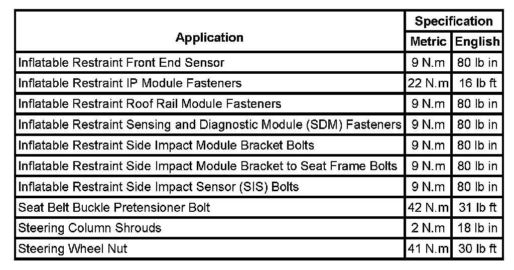 Fastener Tightening Specifications