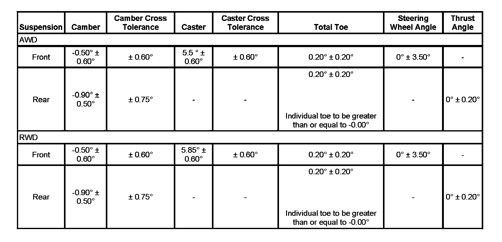 Wheel Alignment Specifications