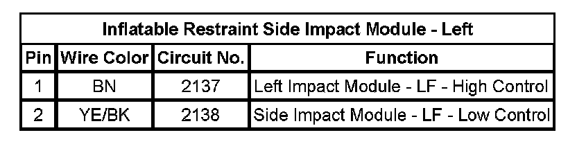 Inflatable Restraint Side Impact Sensor (SIS) - Left