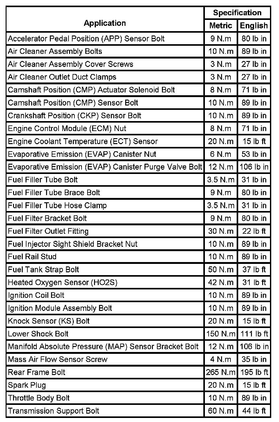 Fastener Tightening Specifications