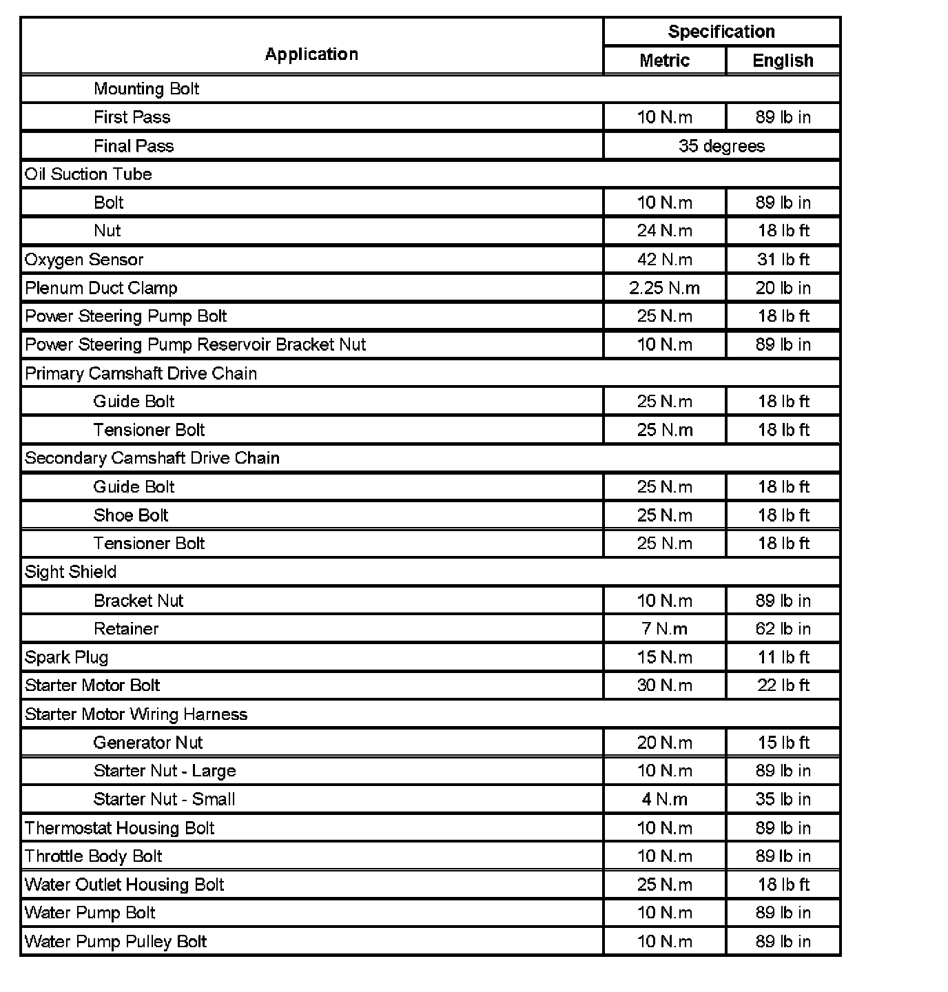 Fastener Tightening Specifications