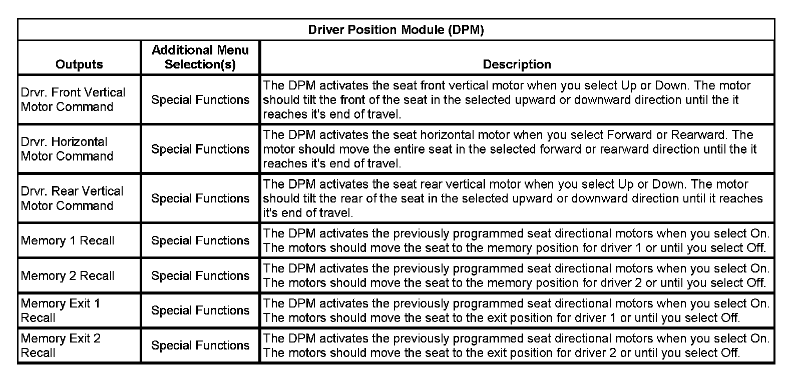 Driver Position Module (DPM):