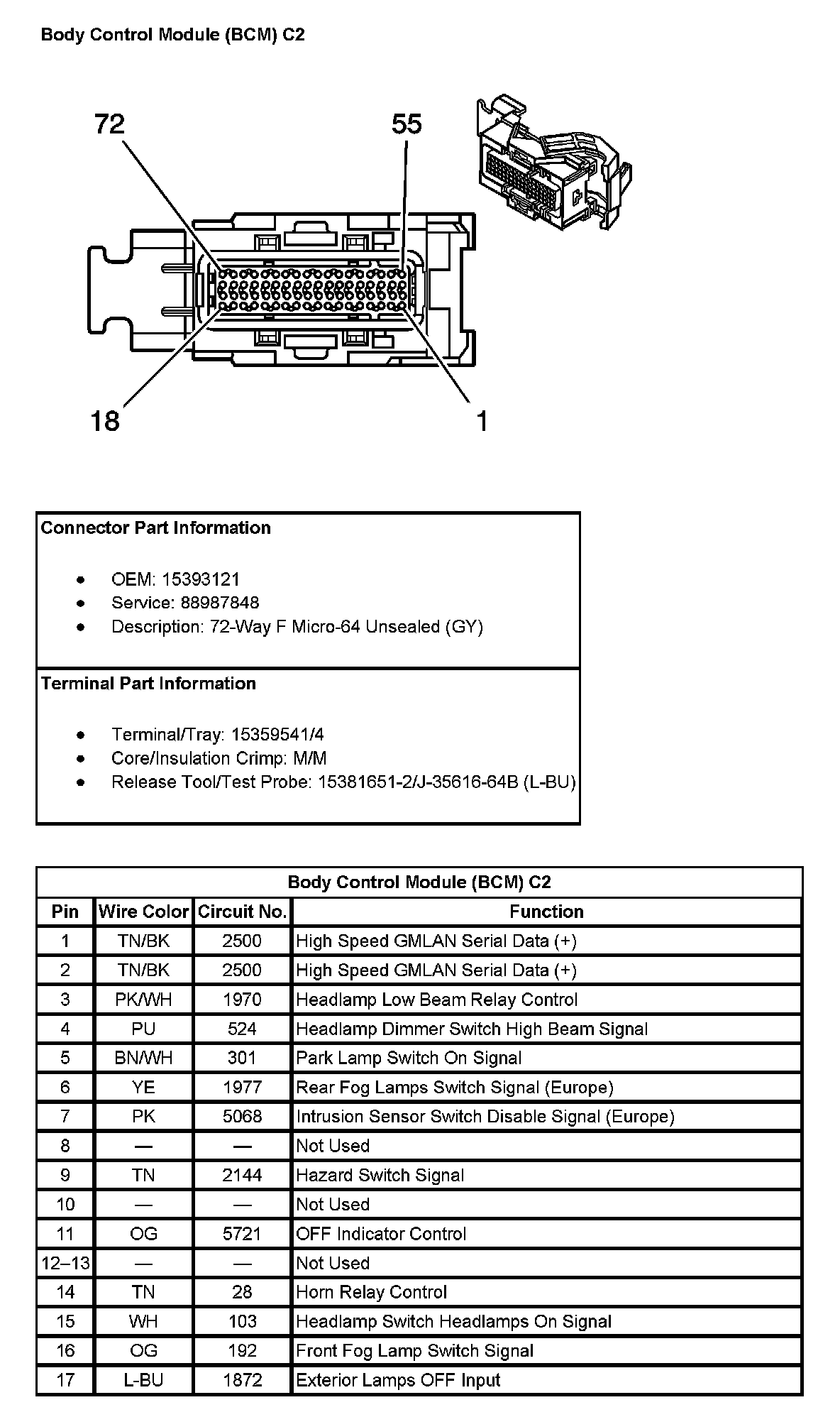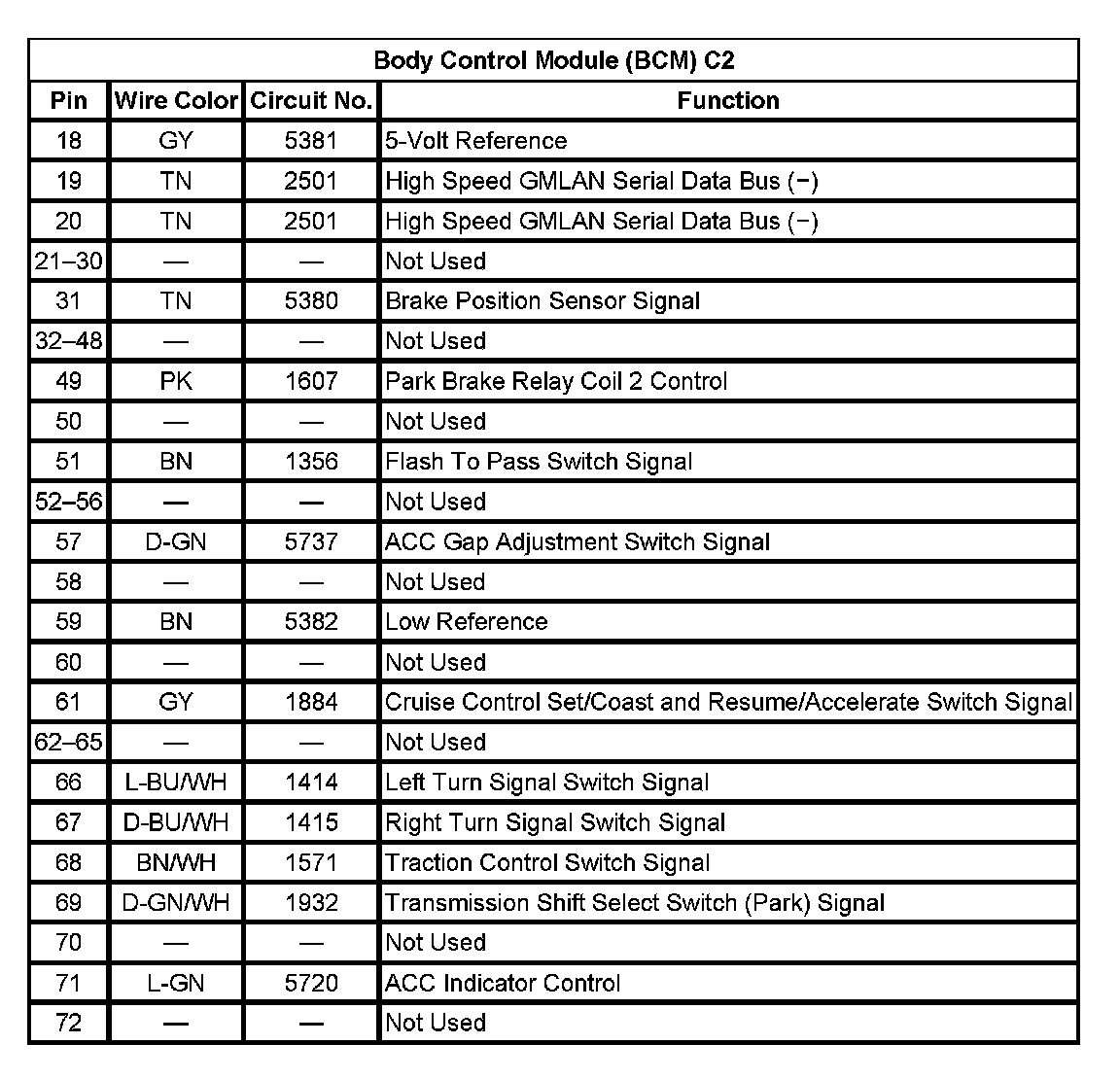 Body Control Module (BCM) C2 (Pin 18 To 72):
