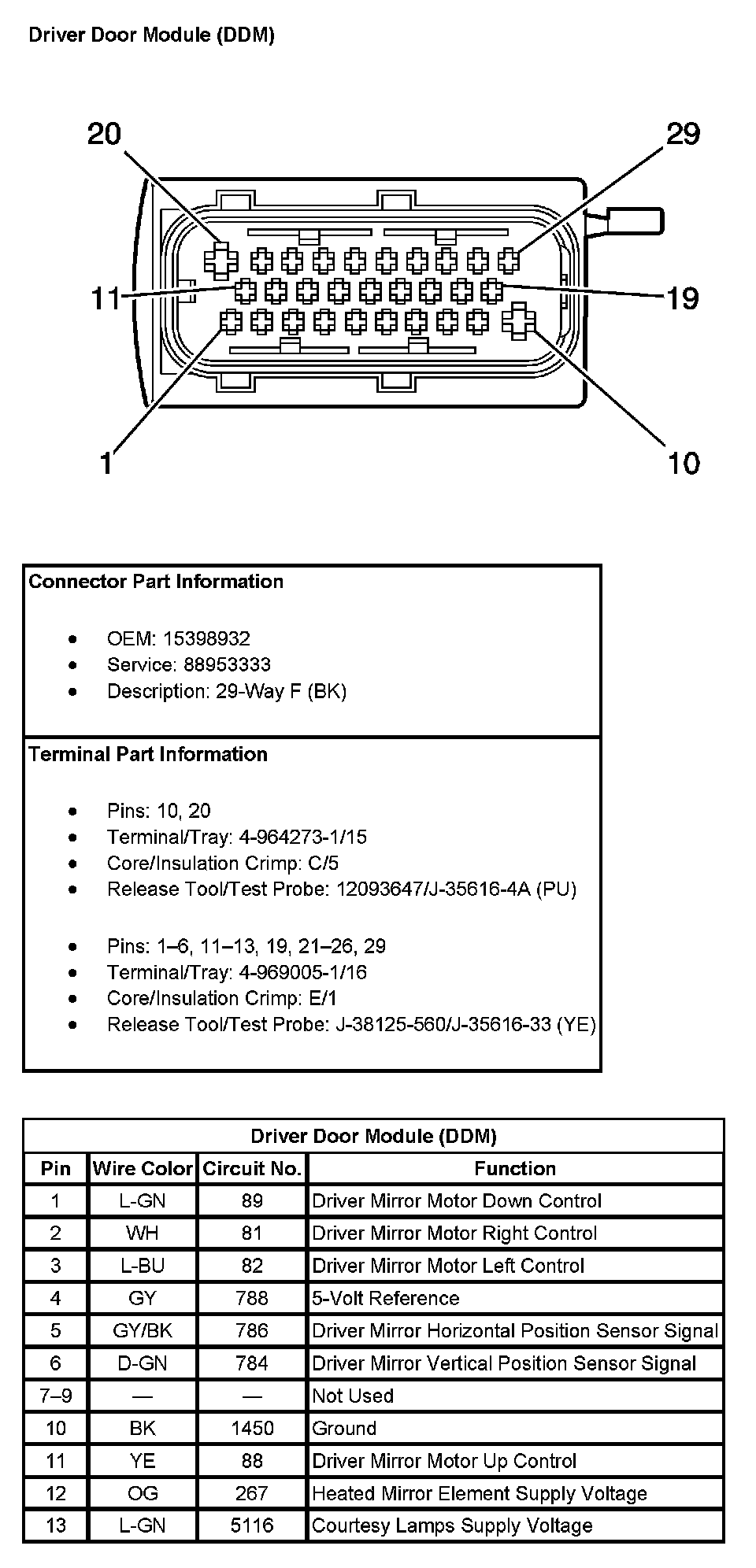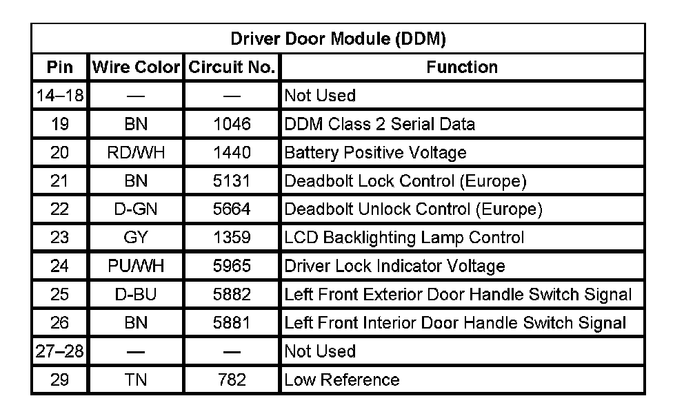 Driver Door Module (DDM) (Pin 14 To 29):