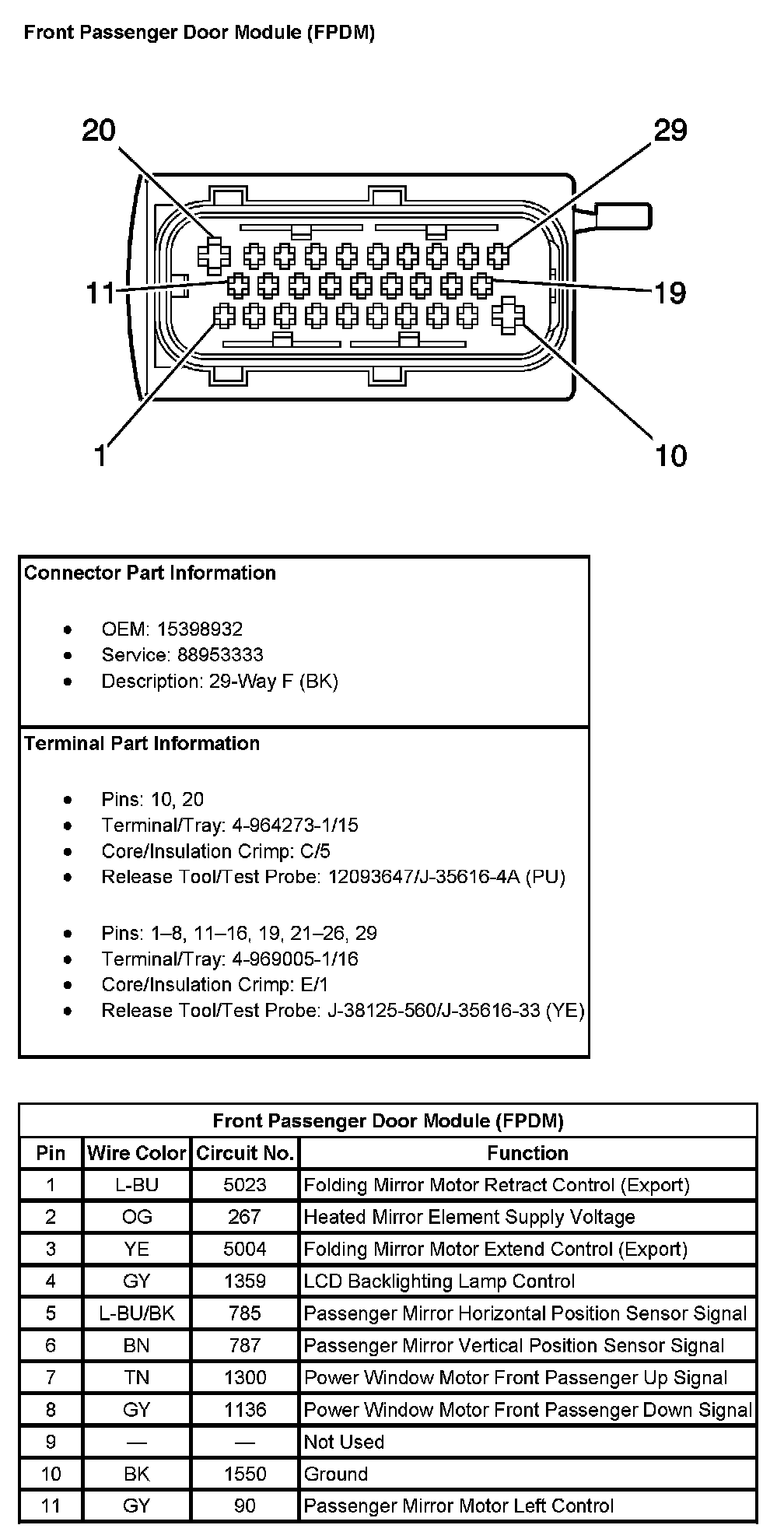 Front Passenger Door Module (FPDM) (Pin 1 To 11):