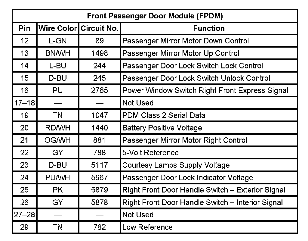 Front Passenger Door Module (FPDM) (Pin 12 To 29):
