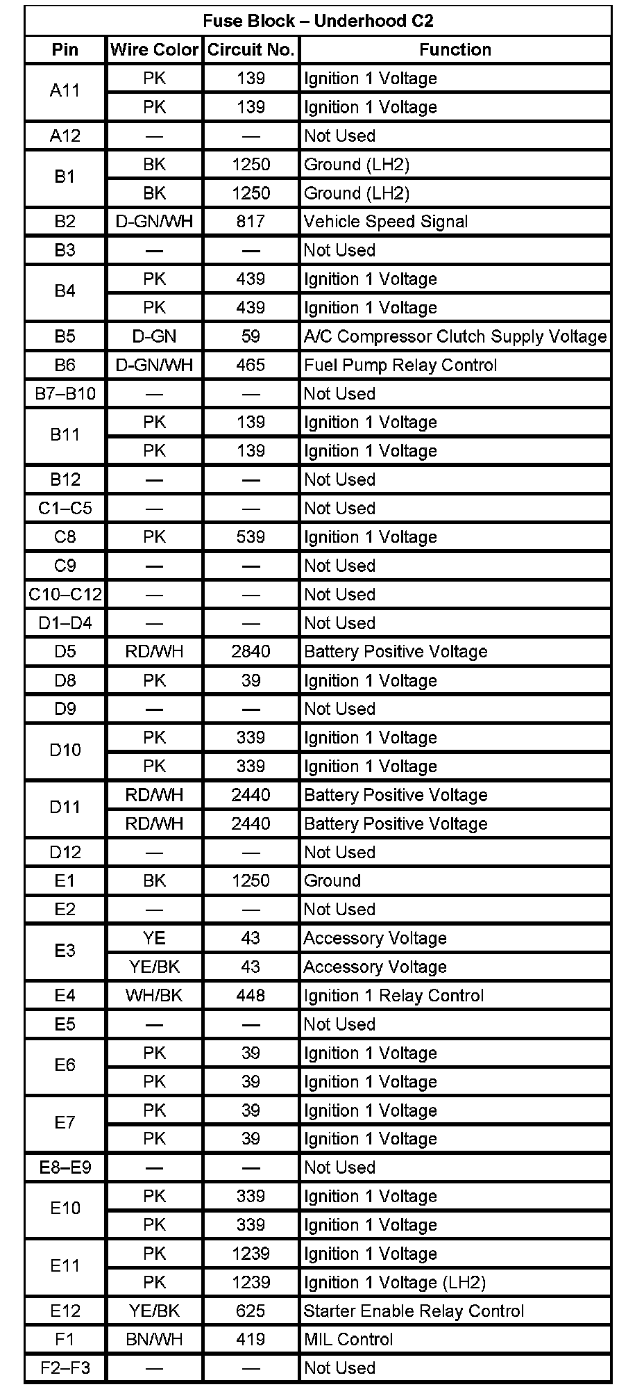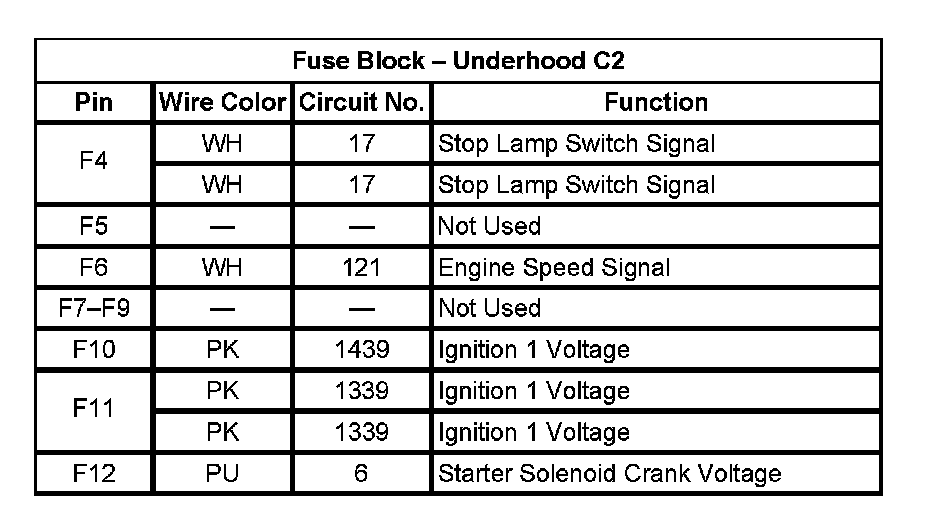 Fuse Block - Underhood C2 (Pin A11 To F3):