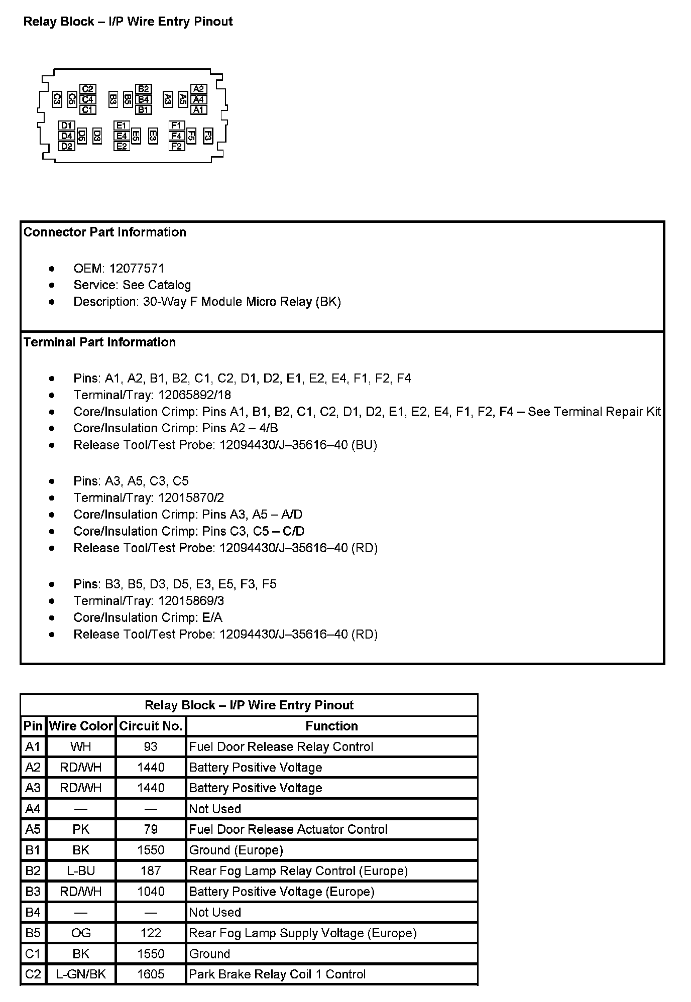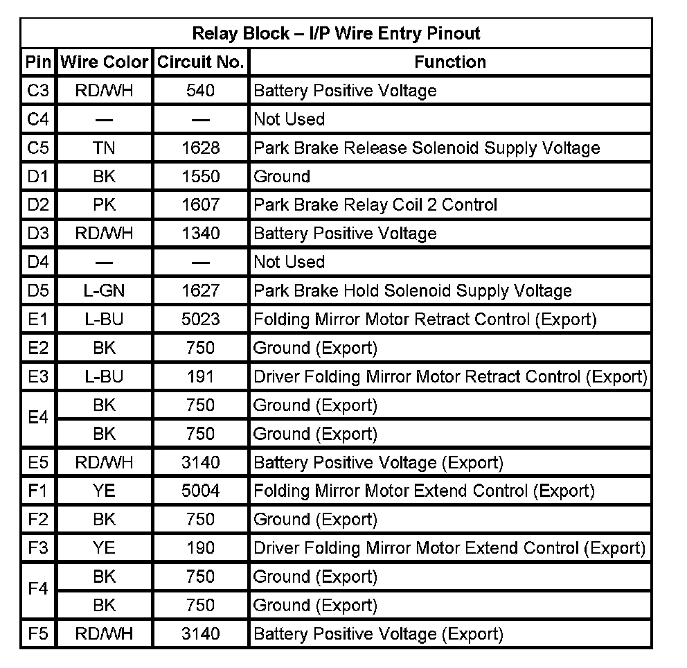 Relay Block - I/P Wire Entry Pinout (Pin C3 To F5):