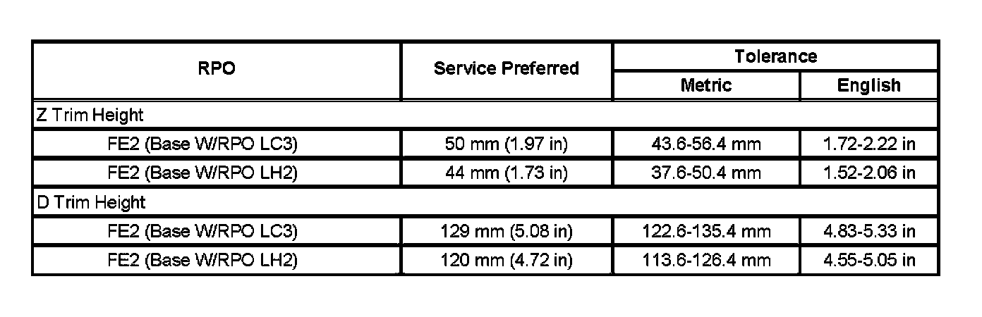 Trim Height Specifications: