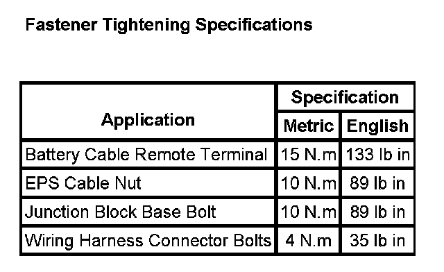 Fastener Tightening Specifications: