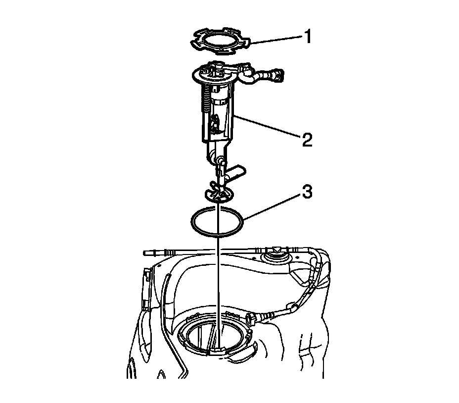 4. Install a NEW fuel tank module O-ring (3) to the fuel tank opening.