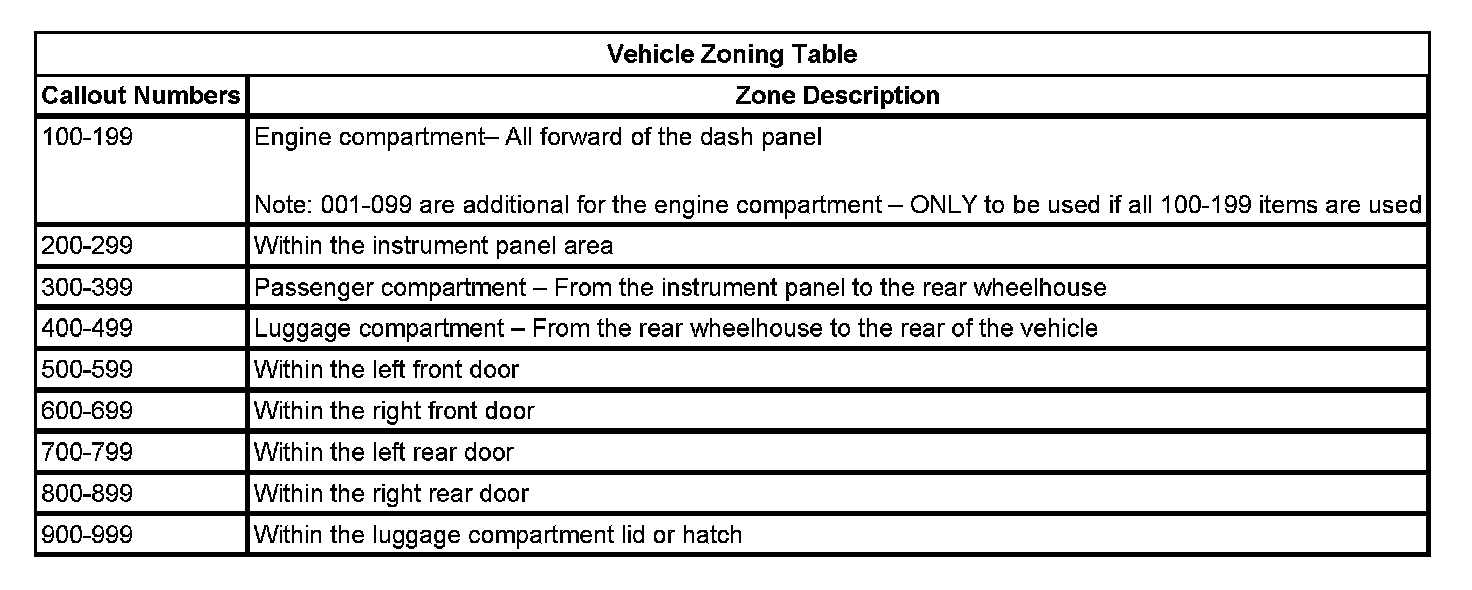Vehicle Zoning Table: