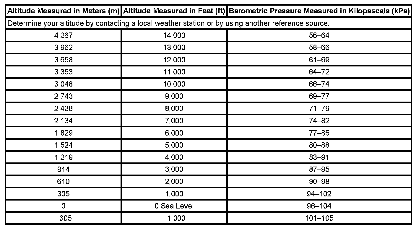 Altitude Versus Barometric Pressure