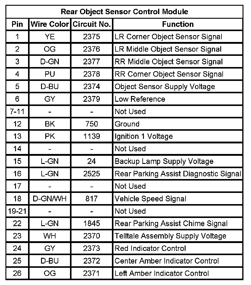 Parking Assist Control Module: Diagrams