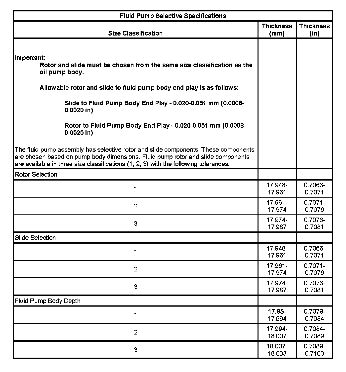Fluid Pump Selective Specifications