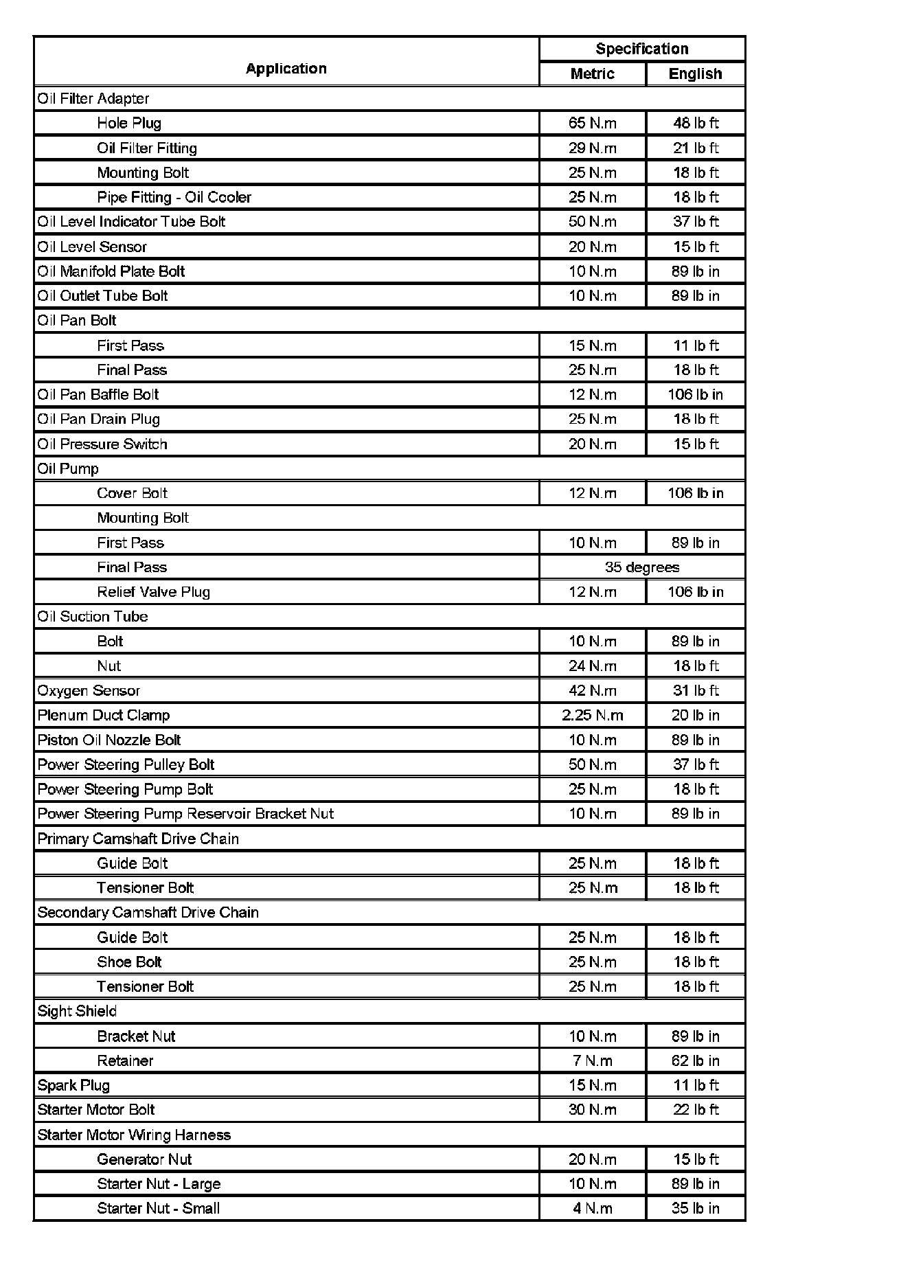 Fastener Tightening Specifications (Part 1):