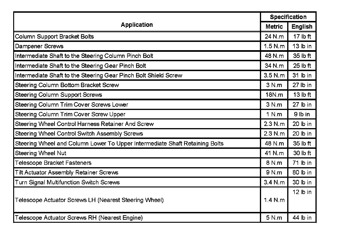 Fastener Tightening Specifications: