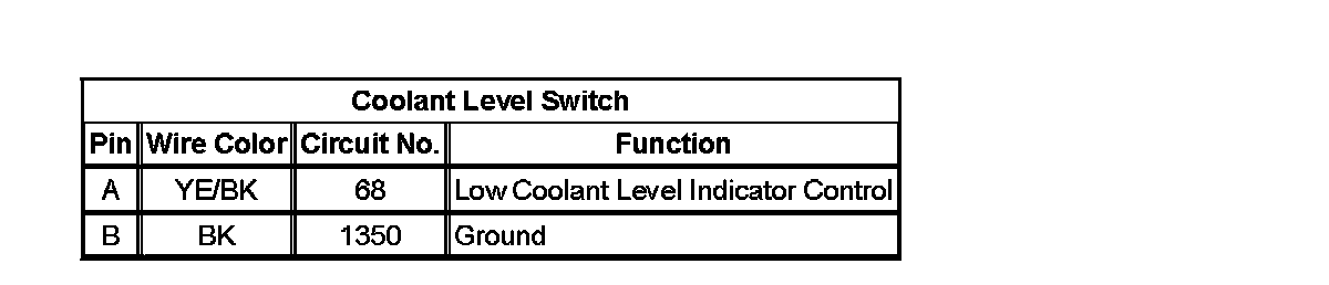 Coolant Level Switch: