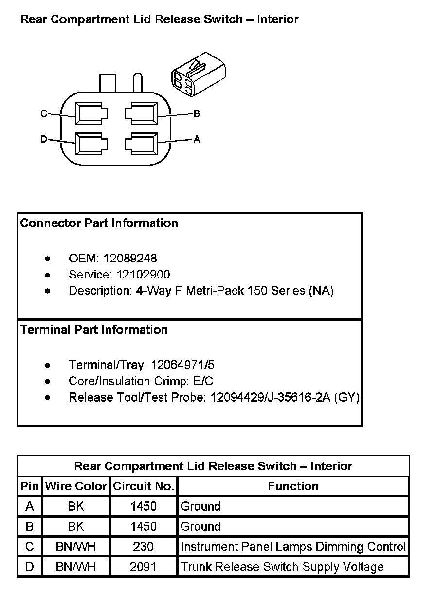 Rear Compartment Lid Release Switch - Interior: