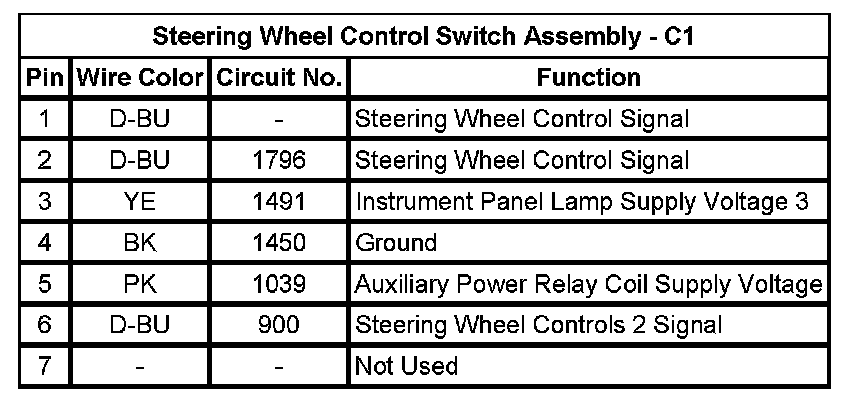 Steering Wheel Control Switch Assembly - C1