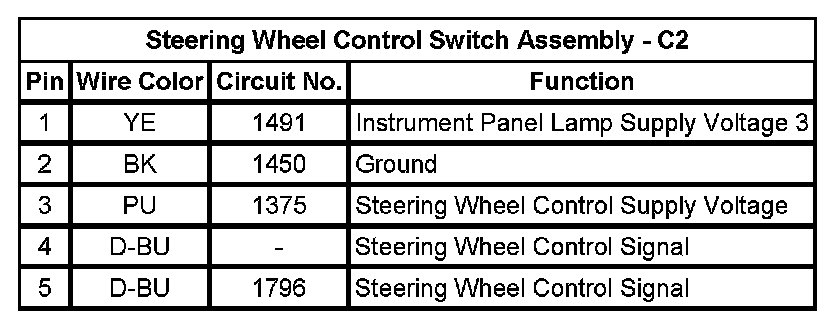 Steering Wheel Control Switch Assembly - C2