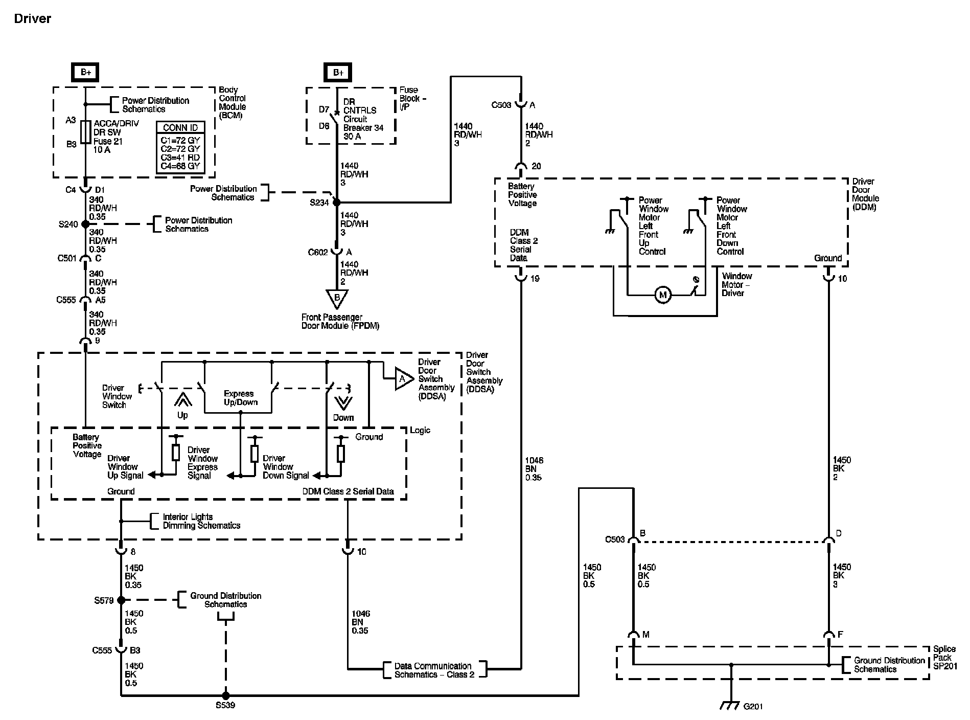 The locations for the Connectors, Grounds, Splices, and Grommets shown within these diagrams can be found via their numbers at Vehicle Locations