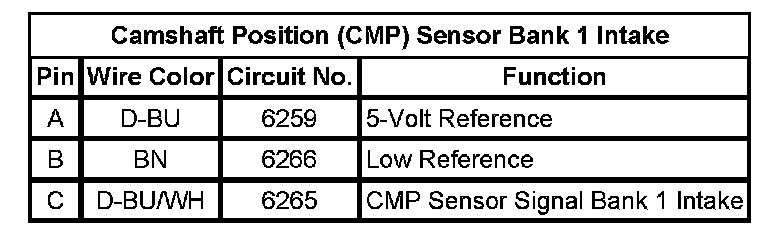 Camshaft Position (CMP) Sensor Bank 1 Intake