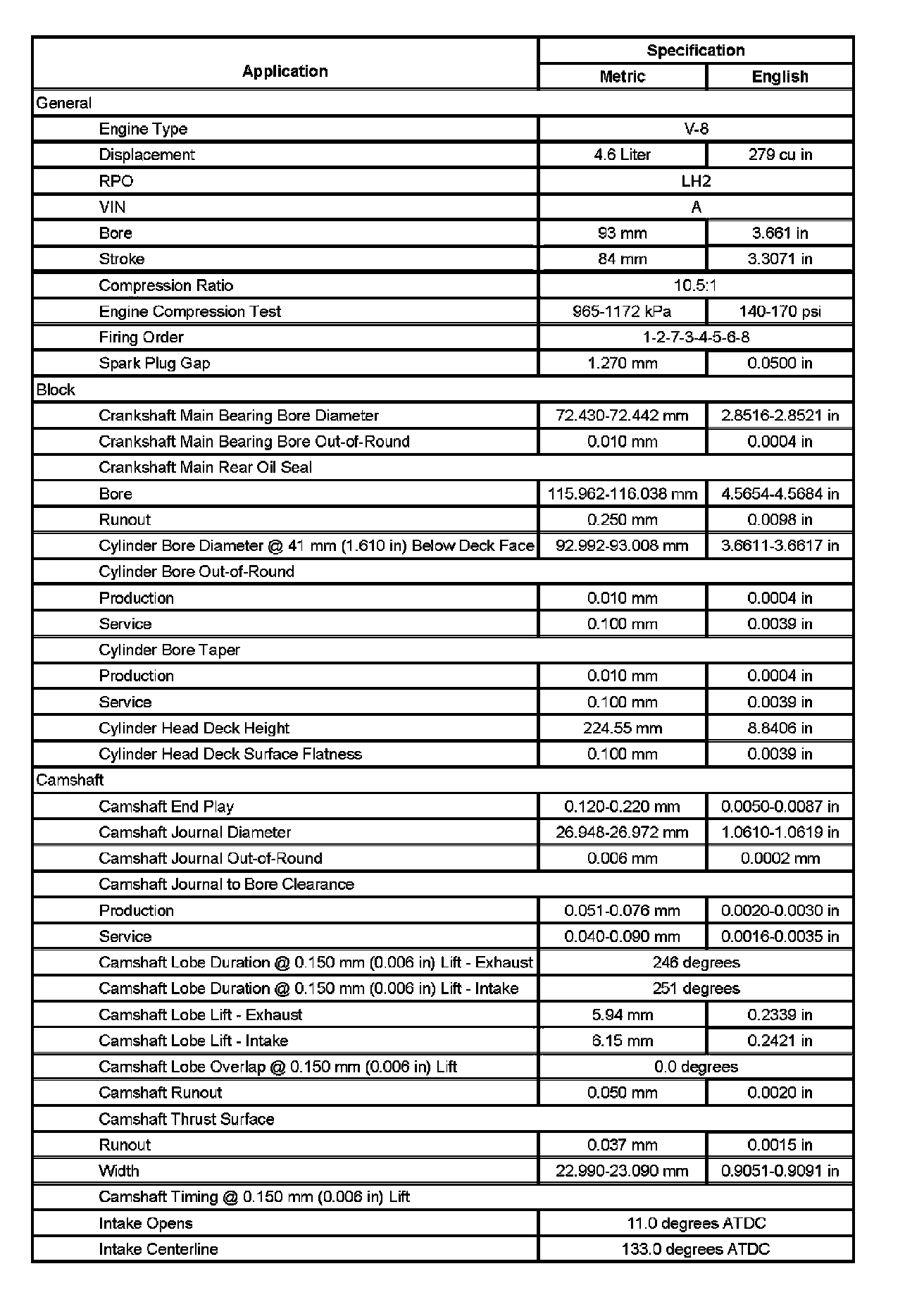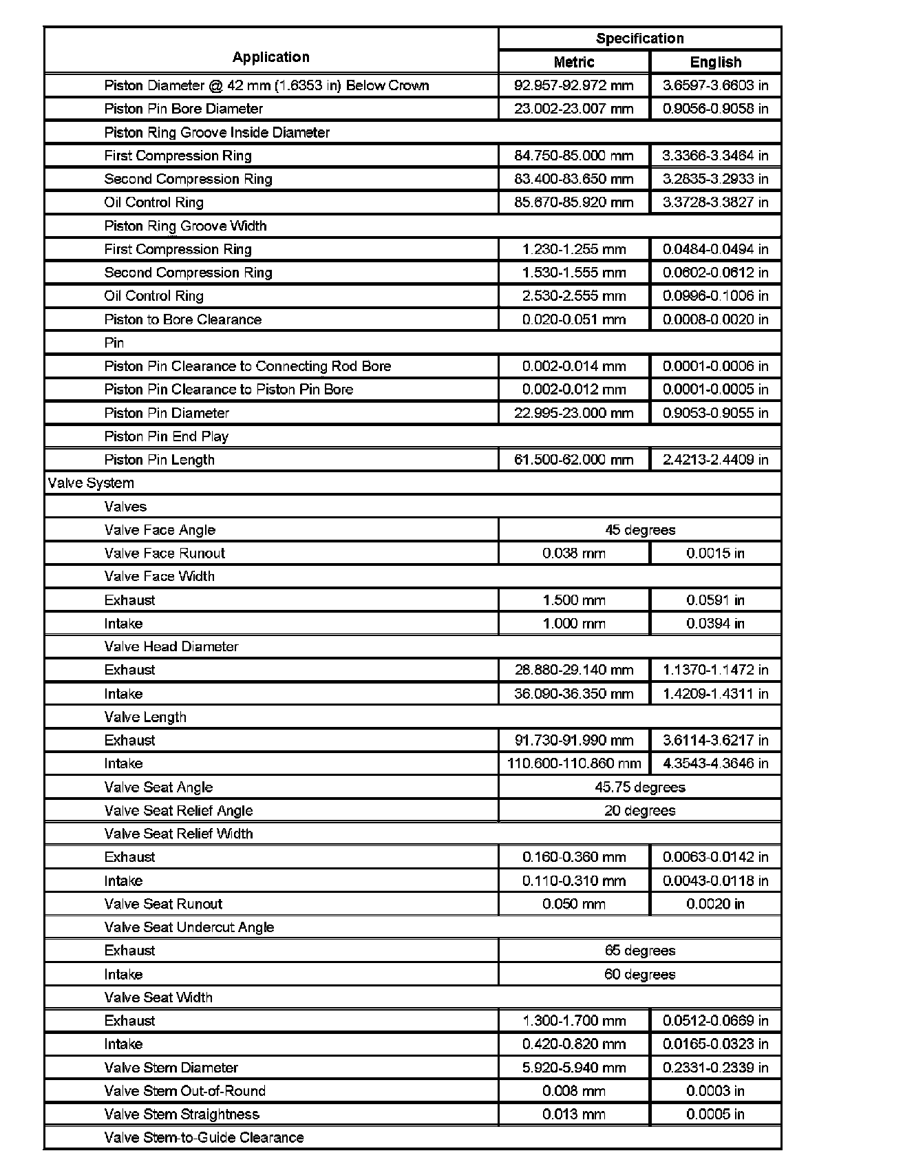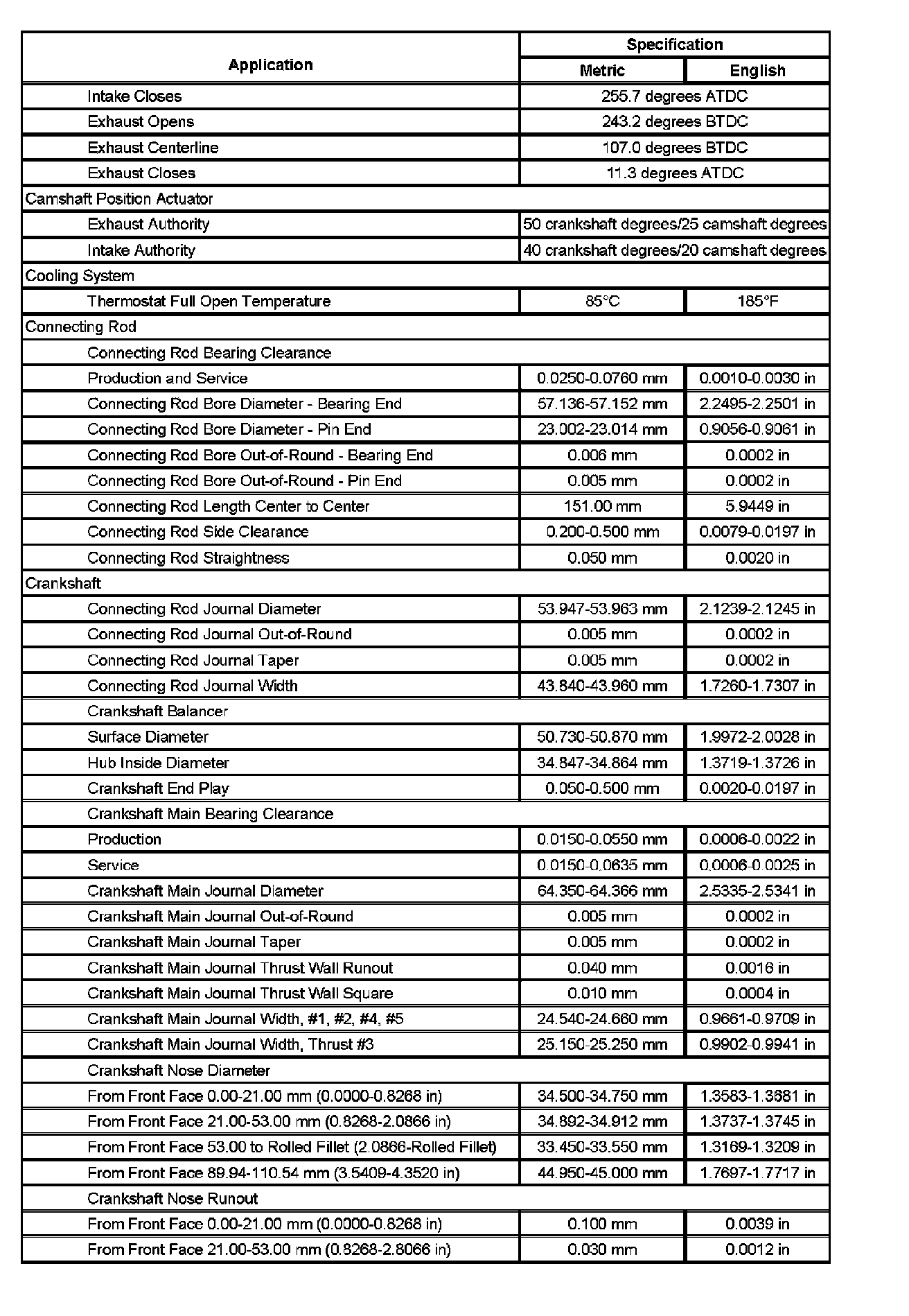 Engine Mechanical Specifications (Part 2):