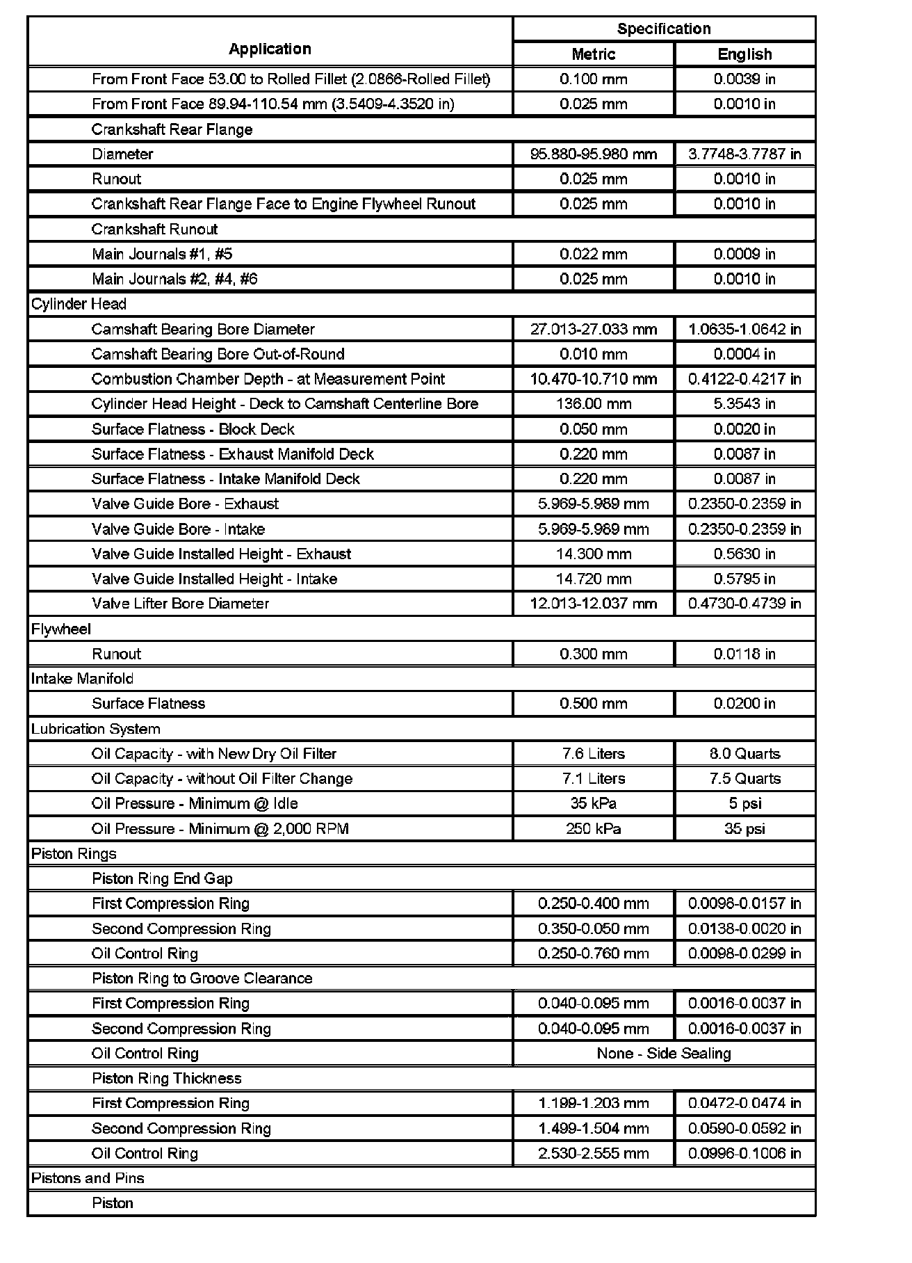 Engine Mechanical Specifications (Part 5):