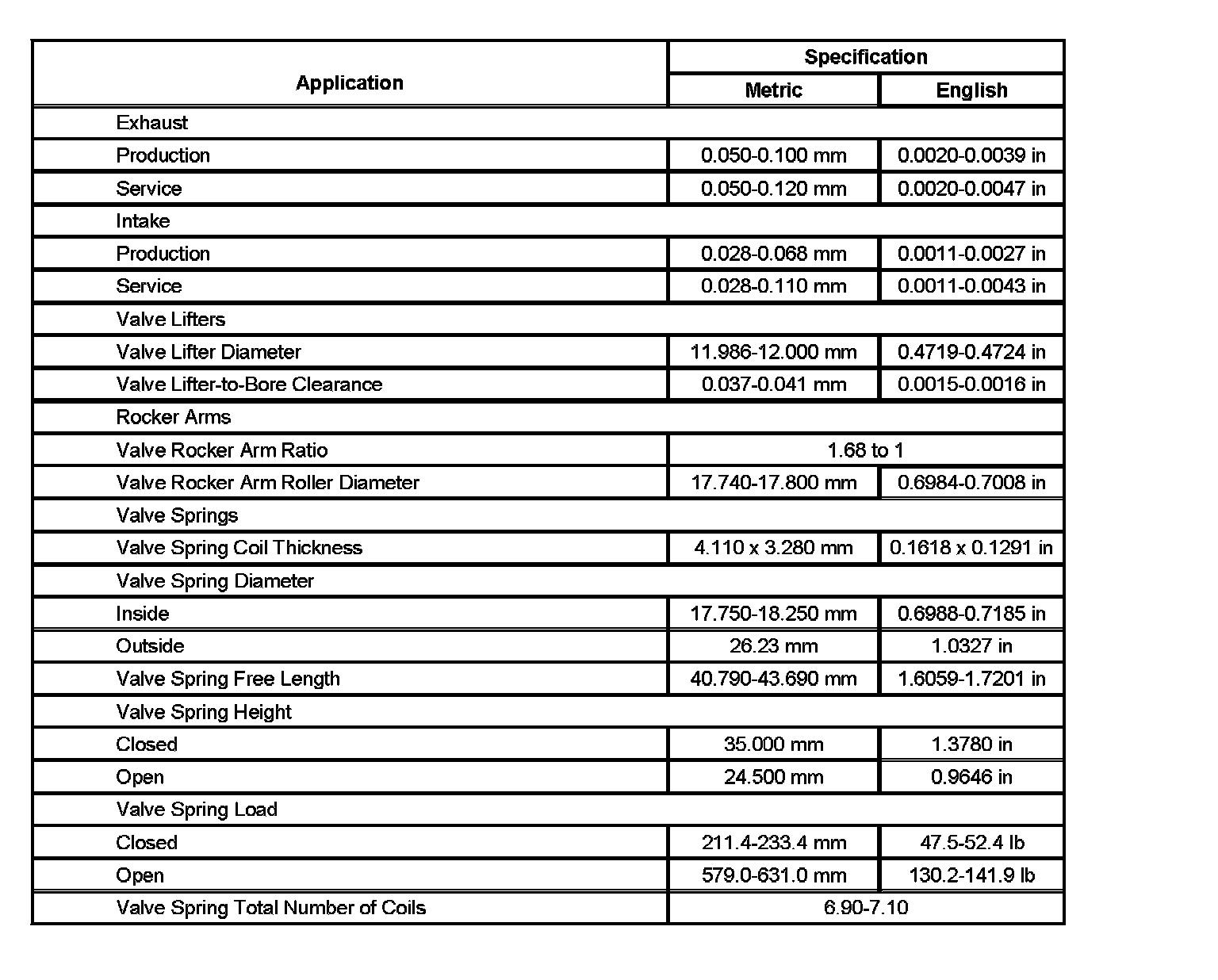 Engine Mechanical Specifications (Part 4):
