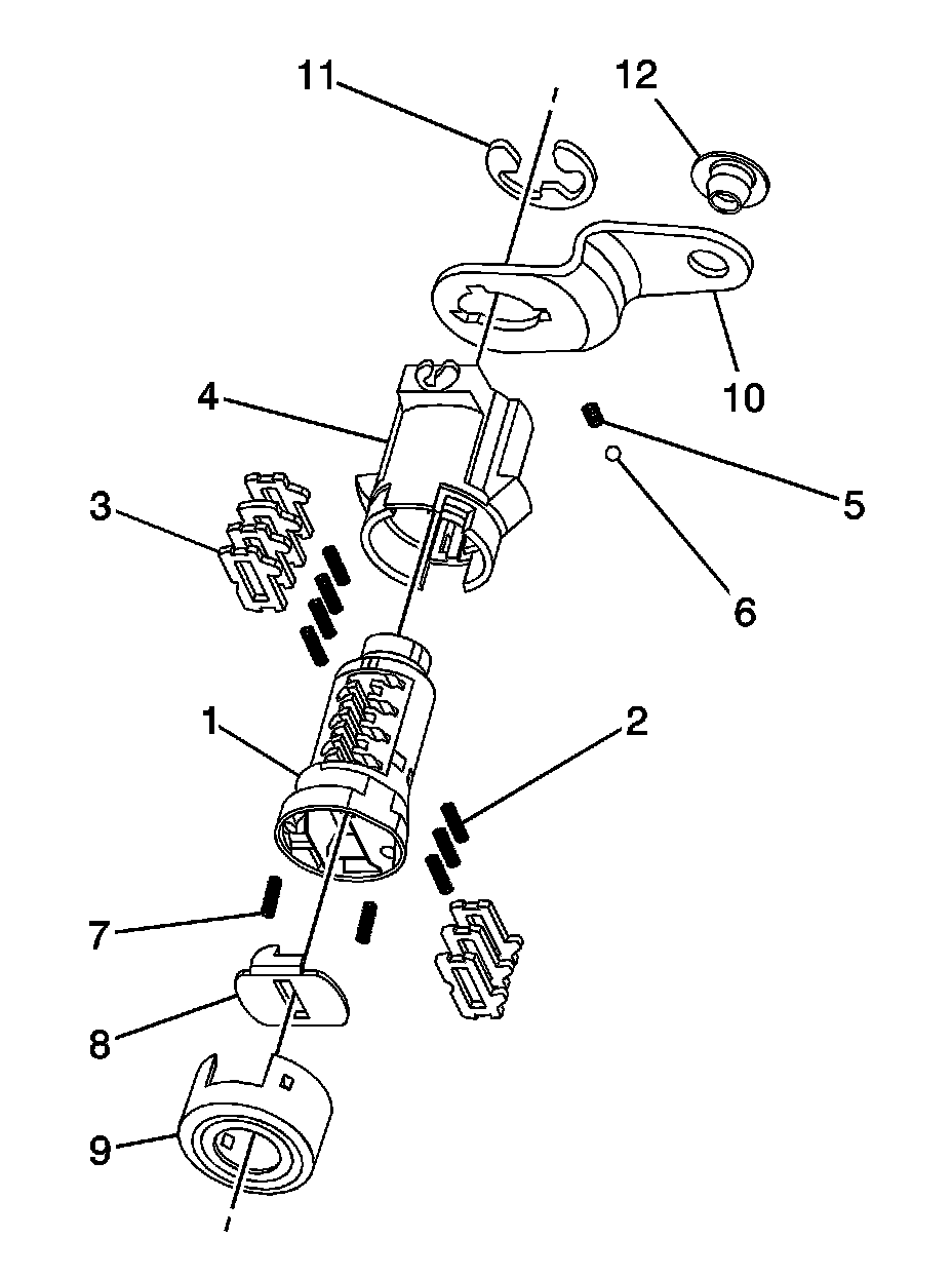 Important: The ignition lock cylinder tumblers (3) are not self-retaining and must be held in place if the key is not fully inserted into the lock cylinder or until the tumbler retainers (4) are properly staked into the cylinder.