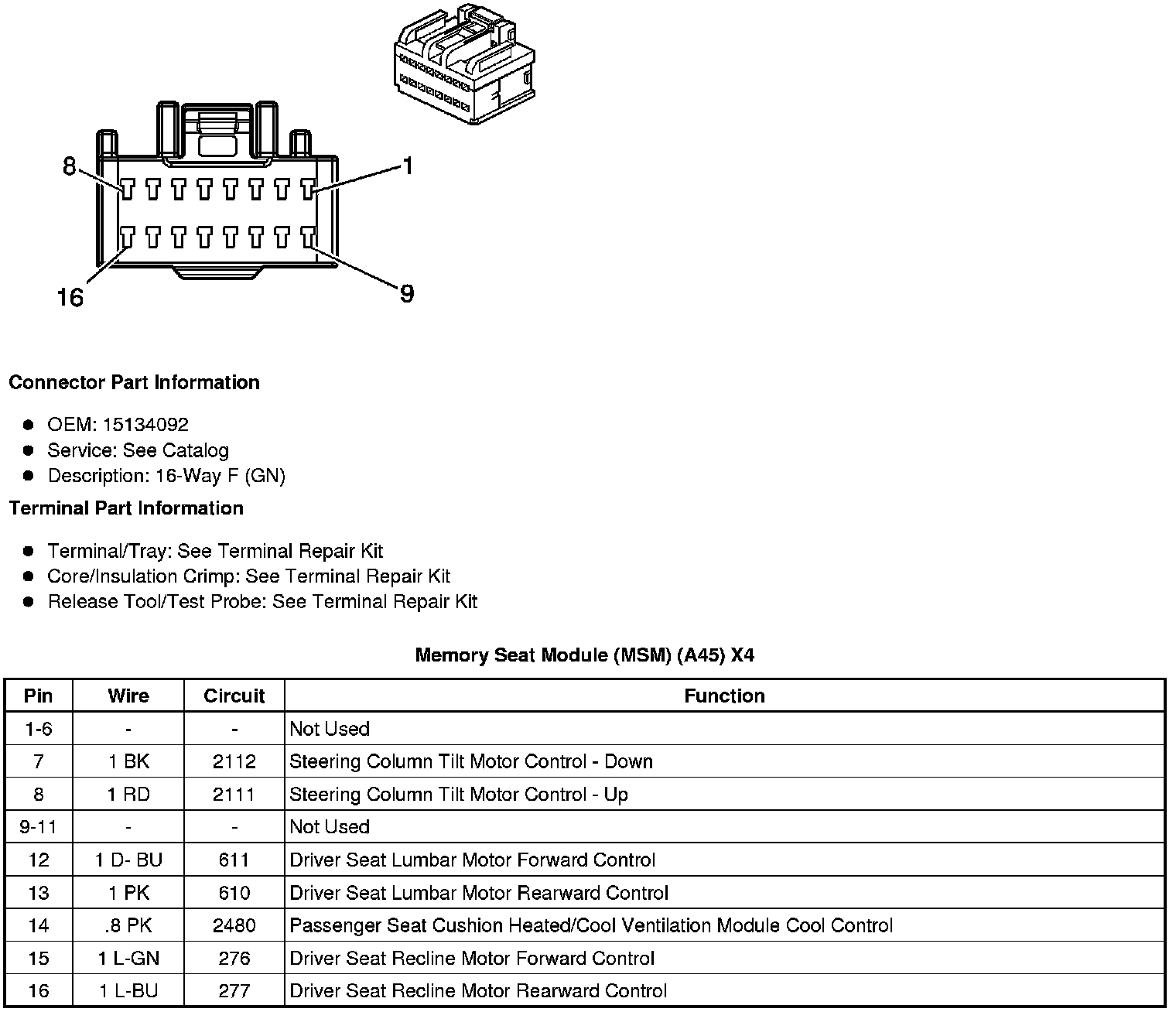 Memory Seat Module (MSM) (A45) X4
