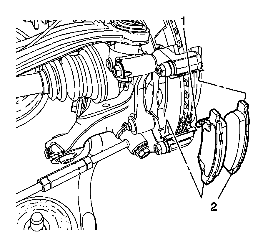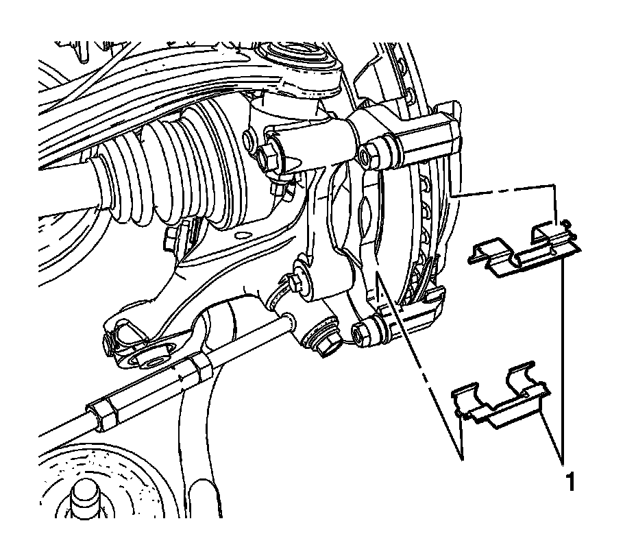 1. Inspect the brake caliper guide pins, seals and brake pad springs for damage and/or corrosion. Refer to Front Disc Brake Mounting and Hardware Inspection (Component Tests and General Diagnostics) .