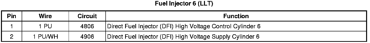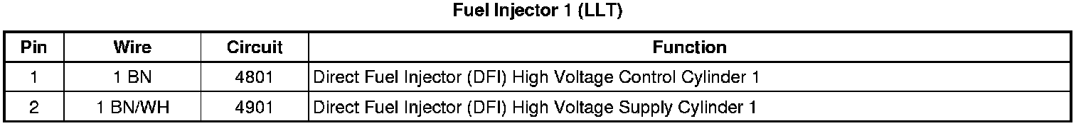 Fuel Injector 1 (LLT)Fuel Injector 1 (LP1/LY7)