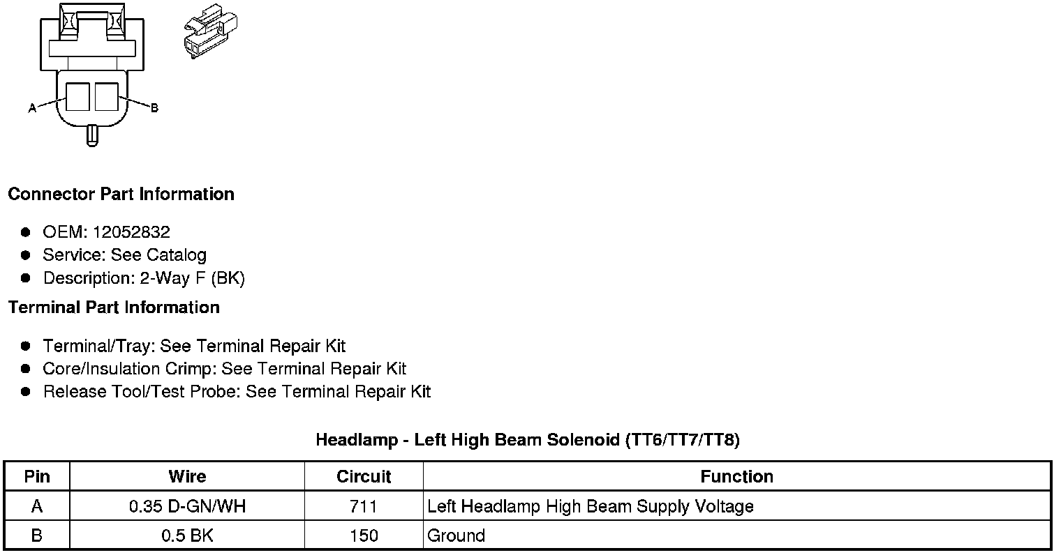 Headlamp - Left High Beam Solenoid (TT6/TT7/TT8)