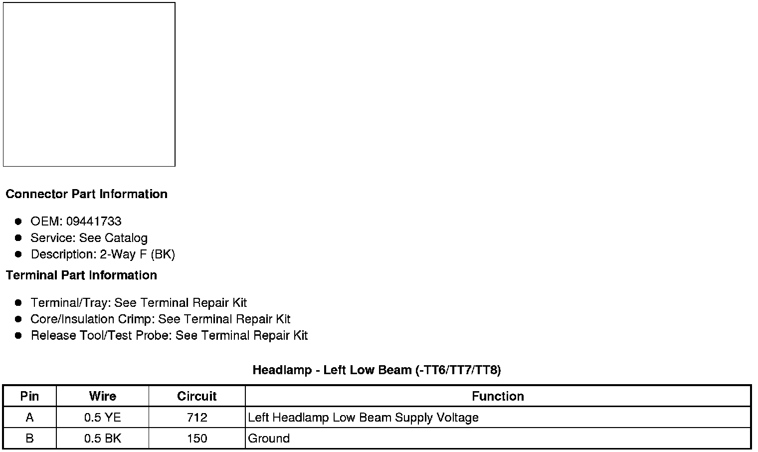 Headlamp - Left Low Beam (-TT6/TT7/TT8)