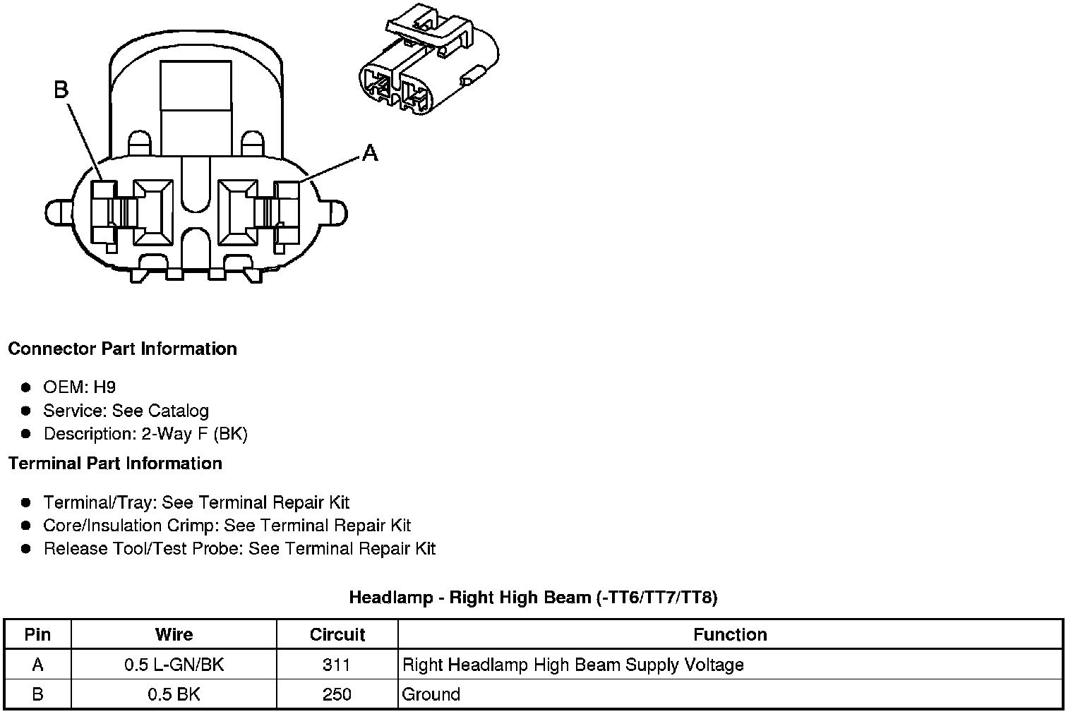 Headlamp - Right High Beam (-TT6/TT7/TT8)