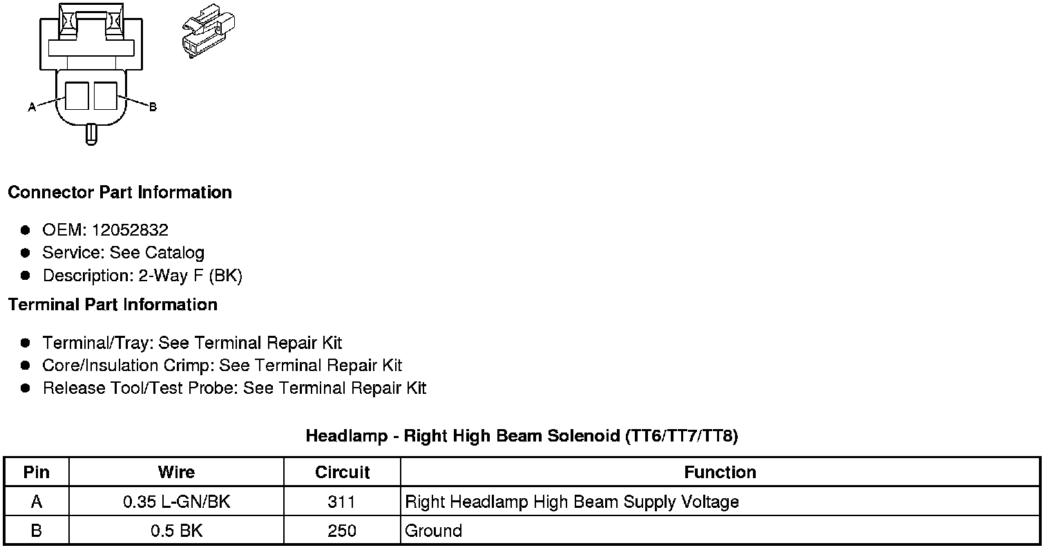 Headlamp - Right High Beam Solenoid (TT6/TT7/TT8)