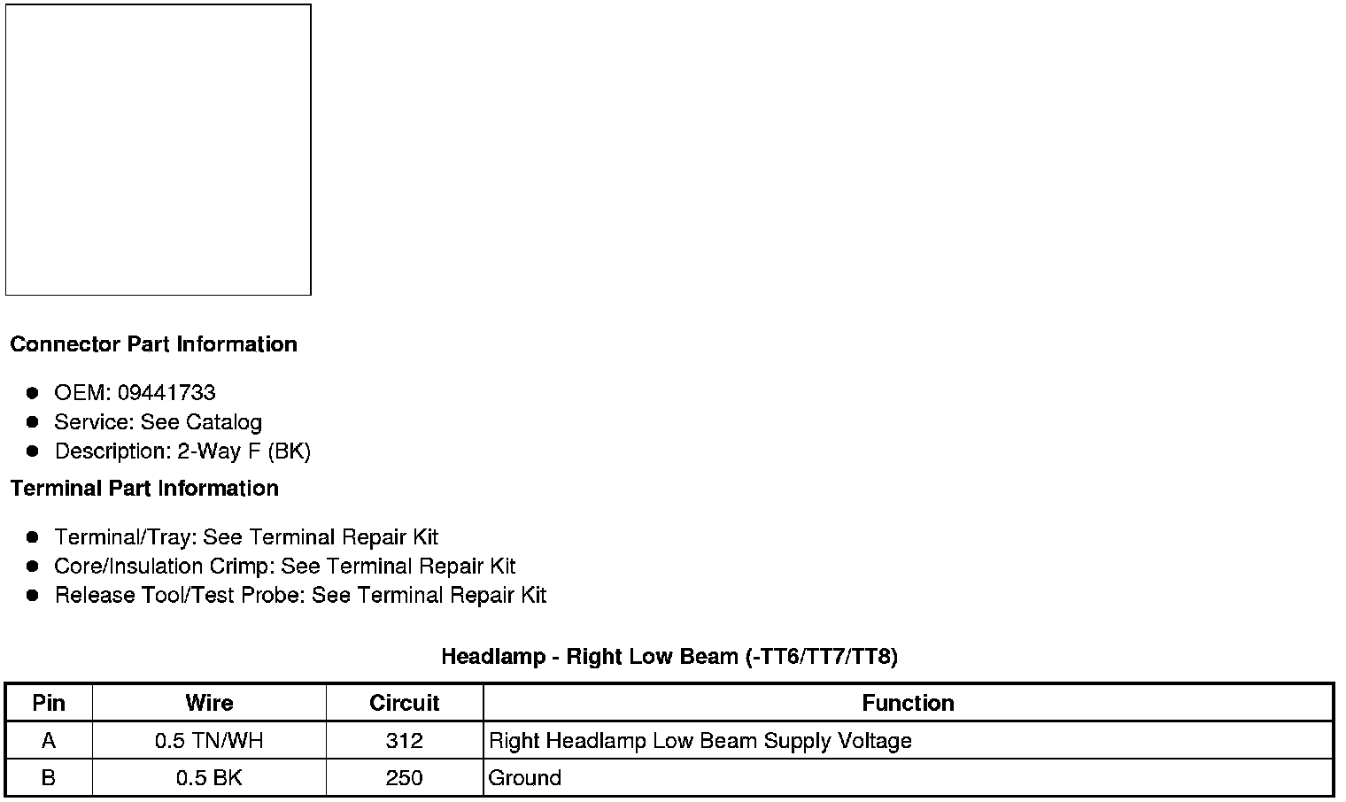 Headlamp - Right Low Beam (-TT6/TT7/TT8)