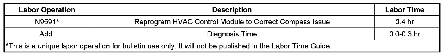 A revised HVAC operating system calibration has been released to address this condition. This new service calibration will cancel automatic rear defroster operation after transitioning from remote start to run in cold temperatures allowing the compass module to recalibrate correctly. Reprogram the HVAC module with updated calibration files using the TIS2WEB Service Programming System (SPS) application. There are 2 calibrations part numbers that are valid for "Operating System". Read the descriptions to determine the correct calibration for the vehicle. After completing the software update, recalibrate the compass using published procedures.
