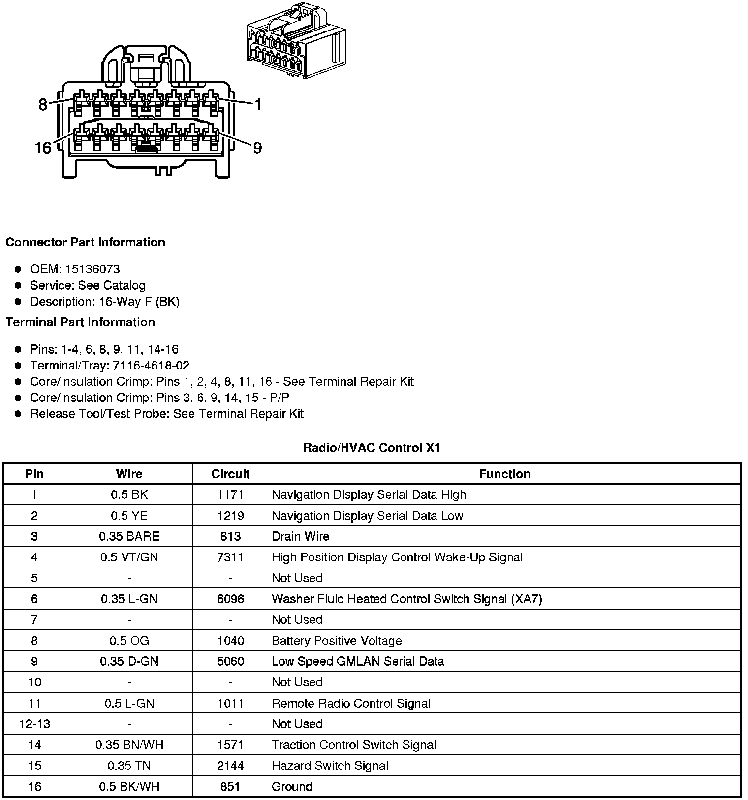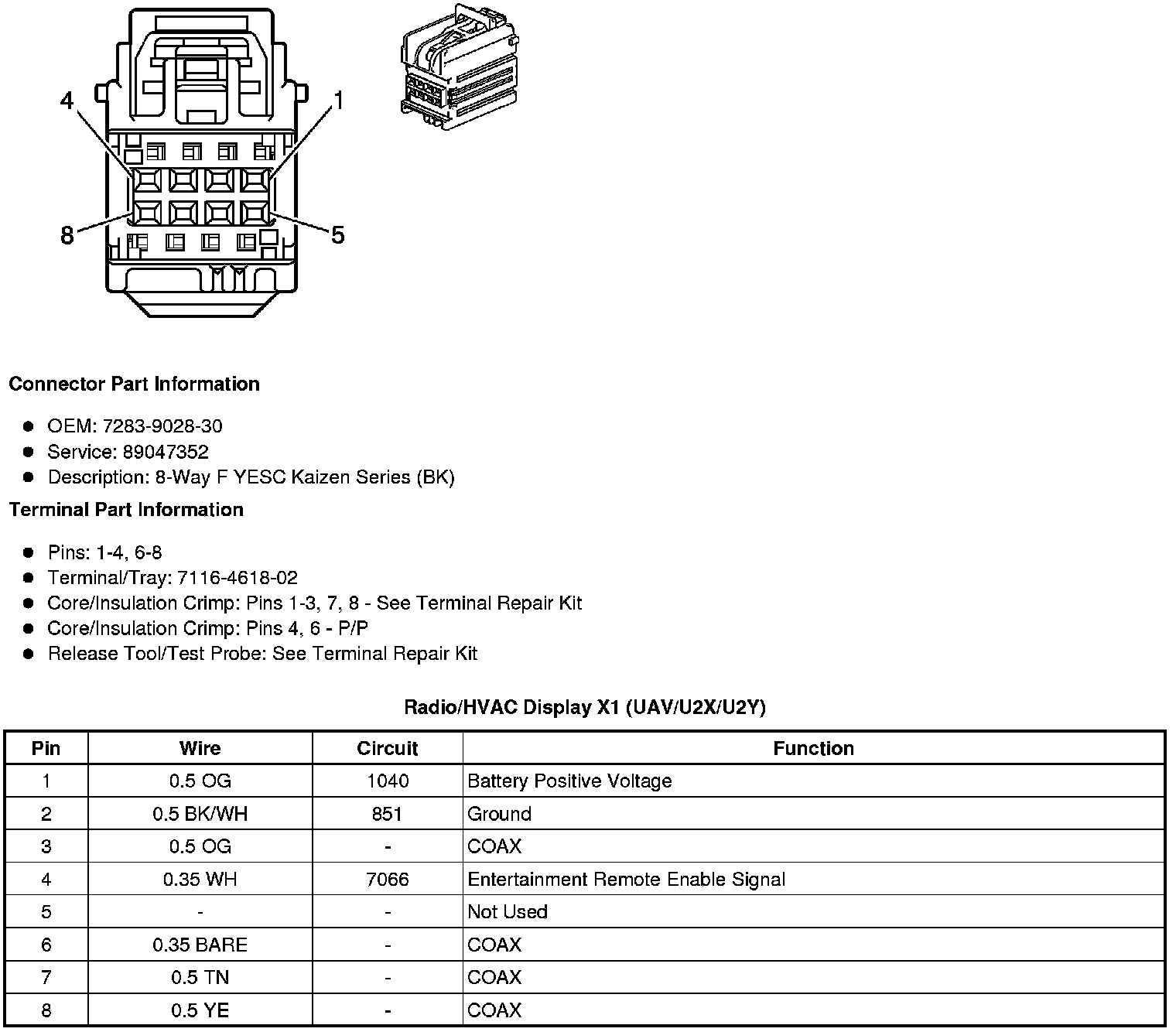 Radio/HVAC Display X1 (UAV/U2X/U2Y)