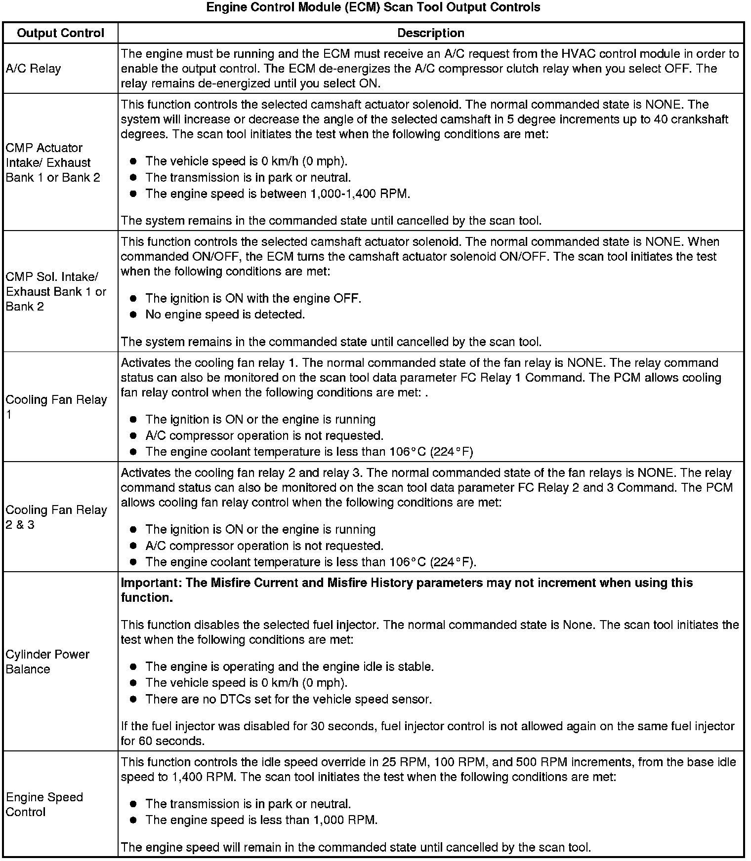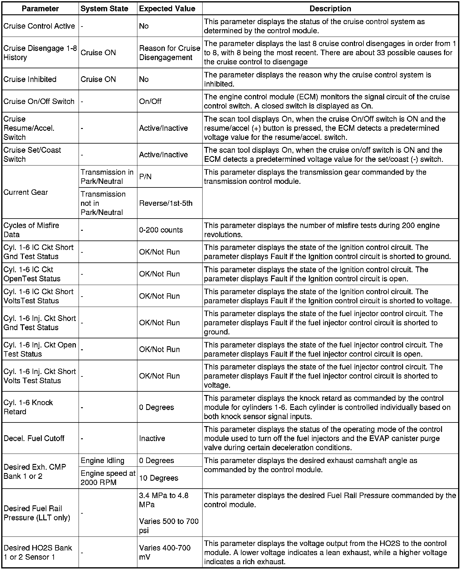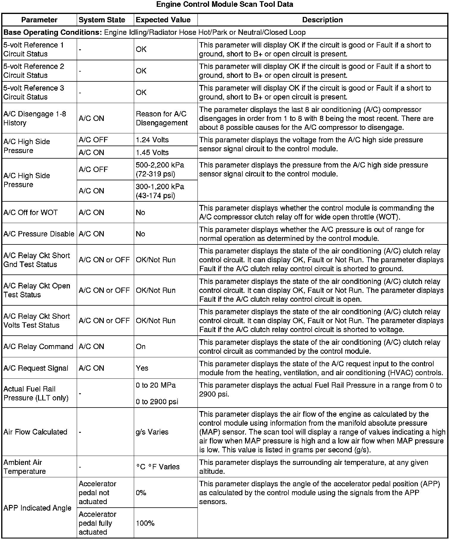 The Engine Control Module Scan Tool Data List contains all engine-related parameters that are available on the scan tool. The list is arranged in alphabetical order. A given parameter may appear in any one of the data lists, and in some cases may appear more than once, or in more than one data list in order to group certain related parameters together.