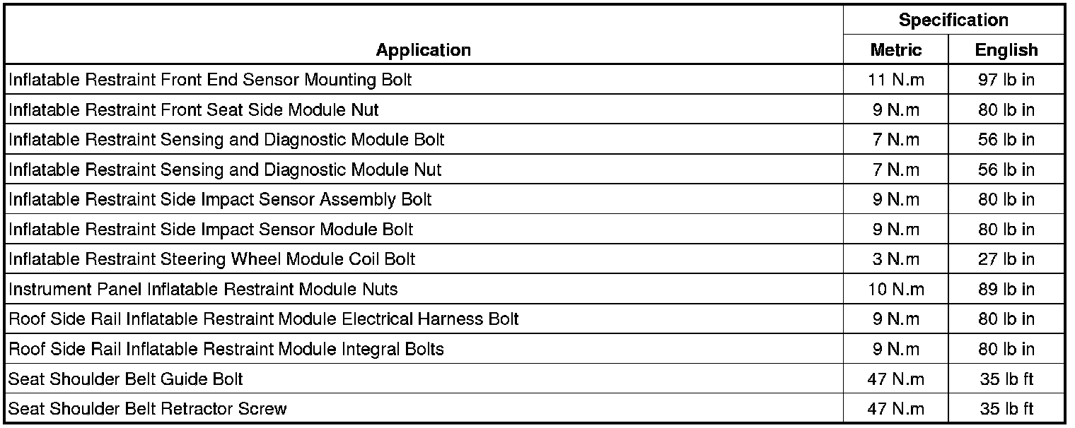 Fastener Tightening Specifications