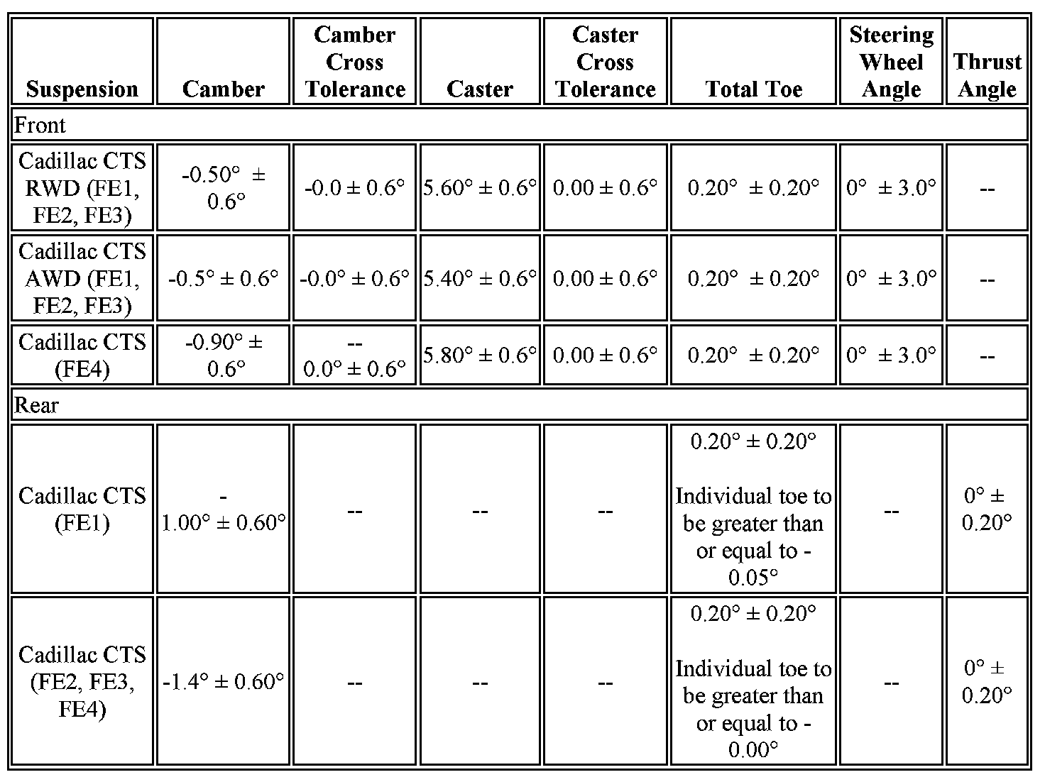 Wheel Alignment Specifications