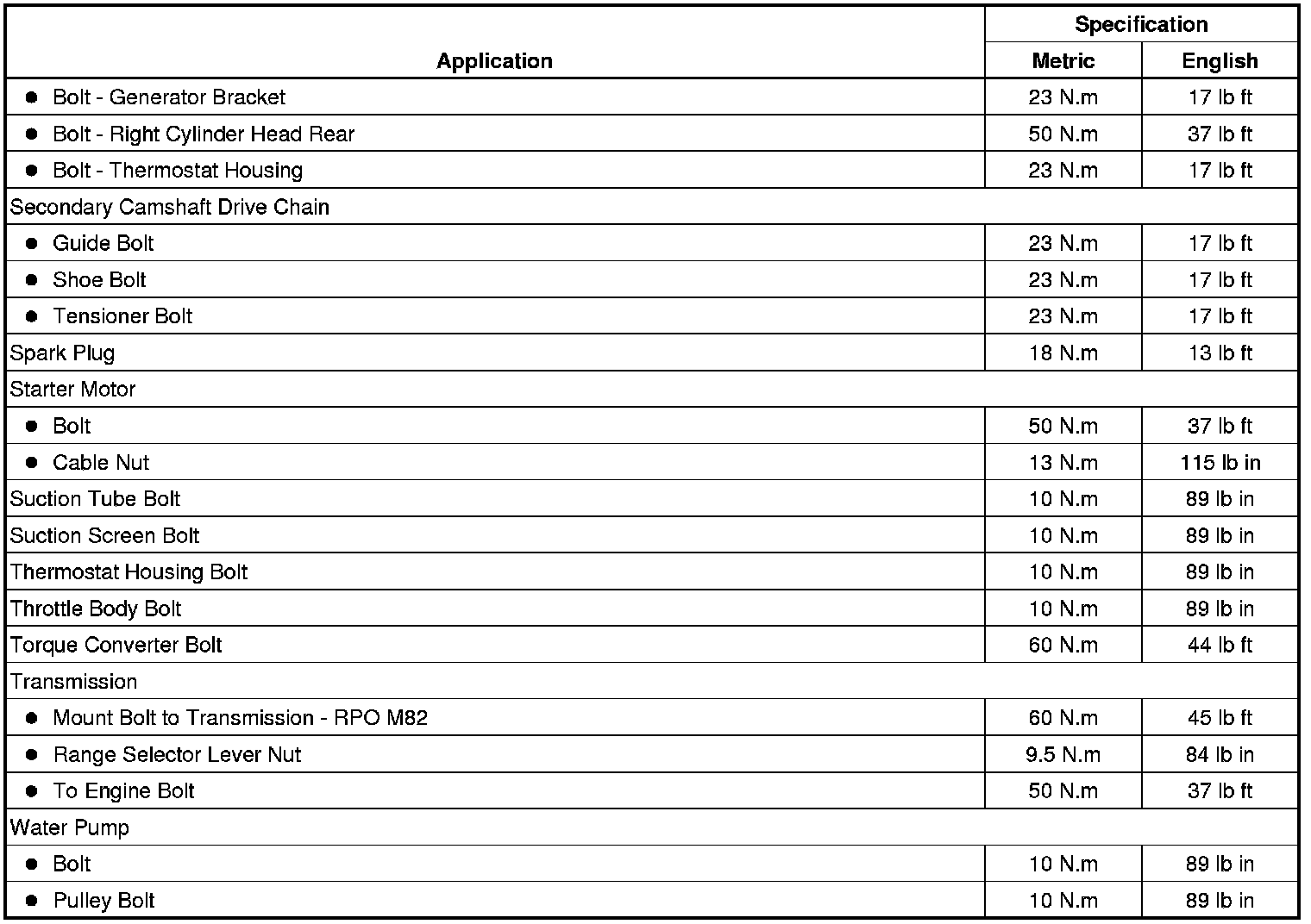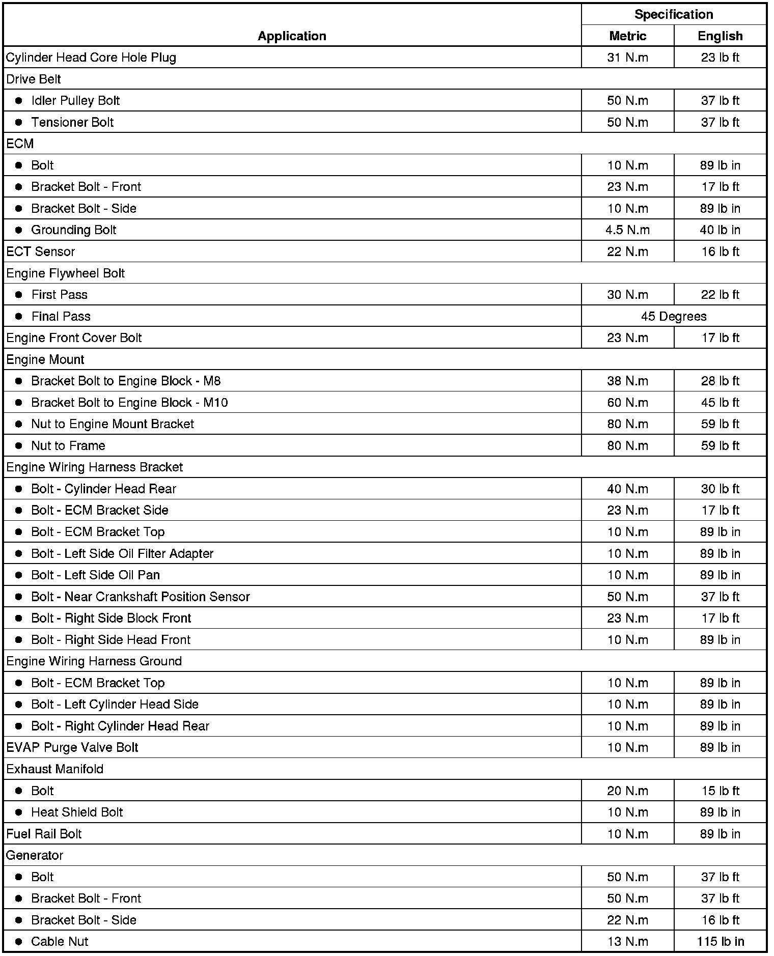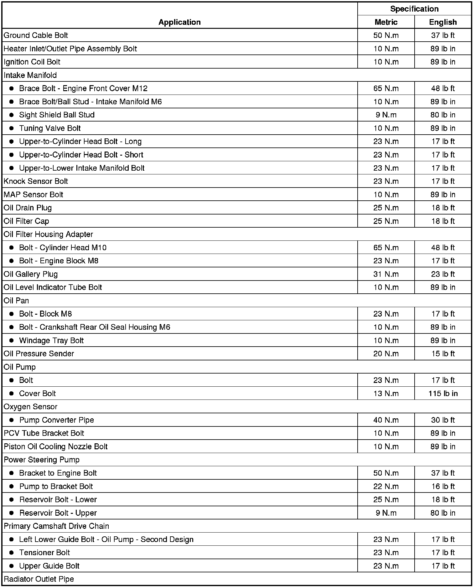 Fastener Tightening Specifications