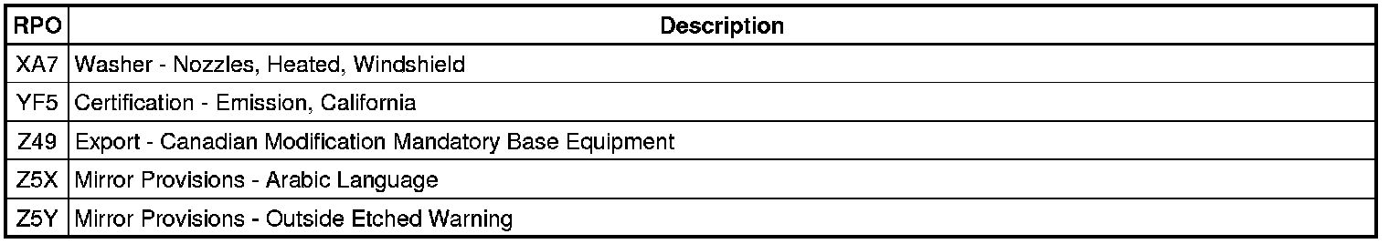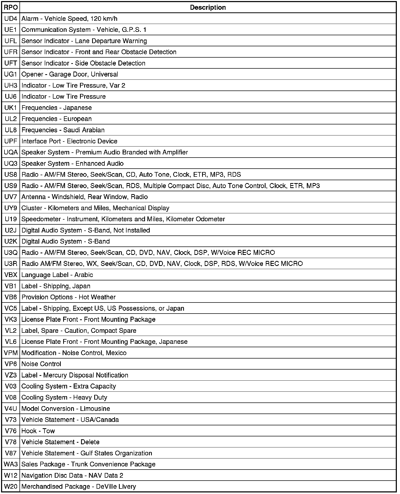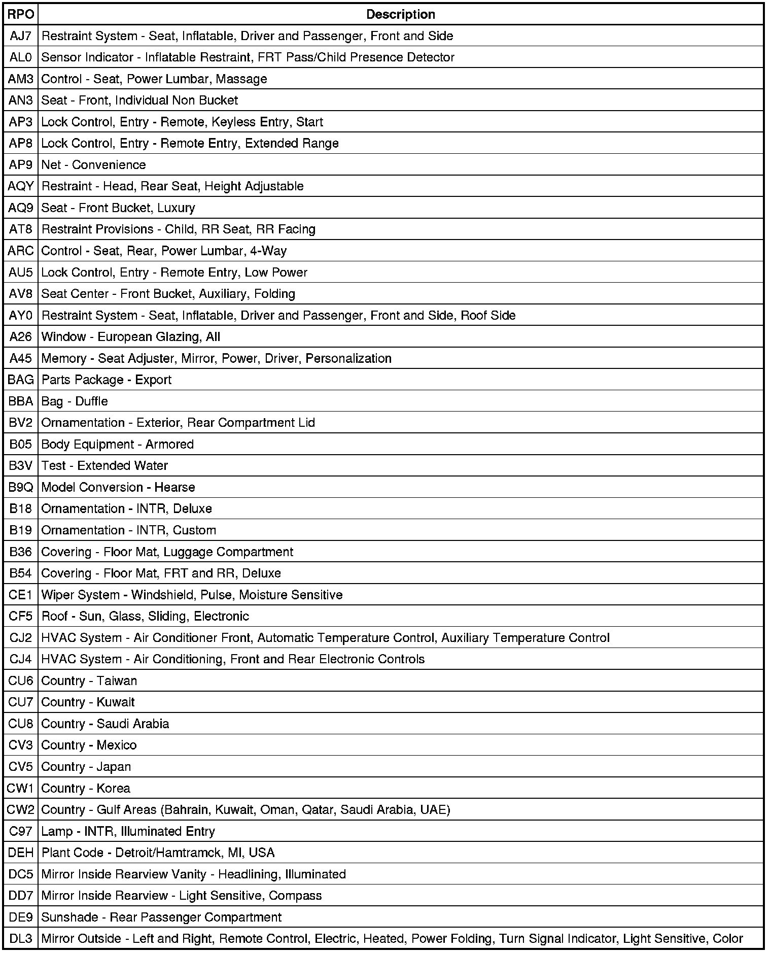 RPO Code List