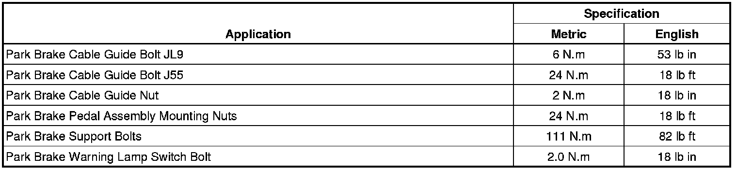 Parking Brake System: Specifications