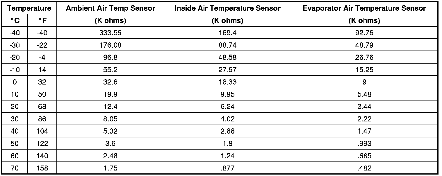Sensor Resistance Table