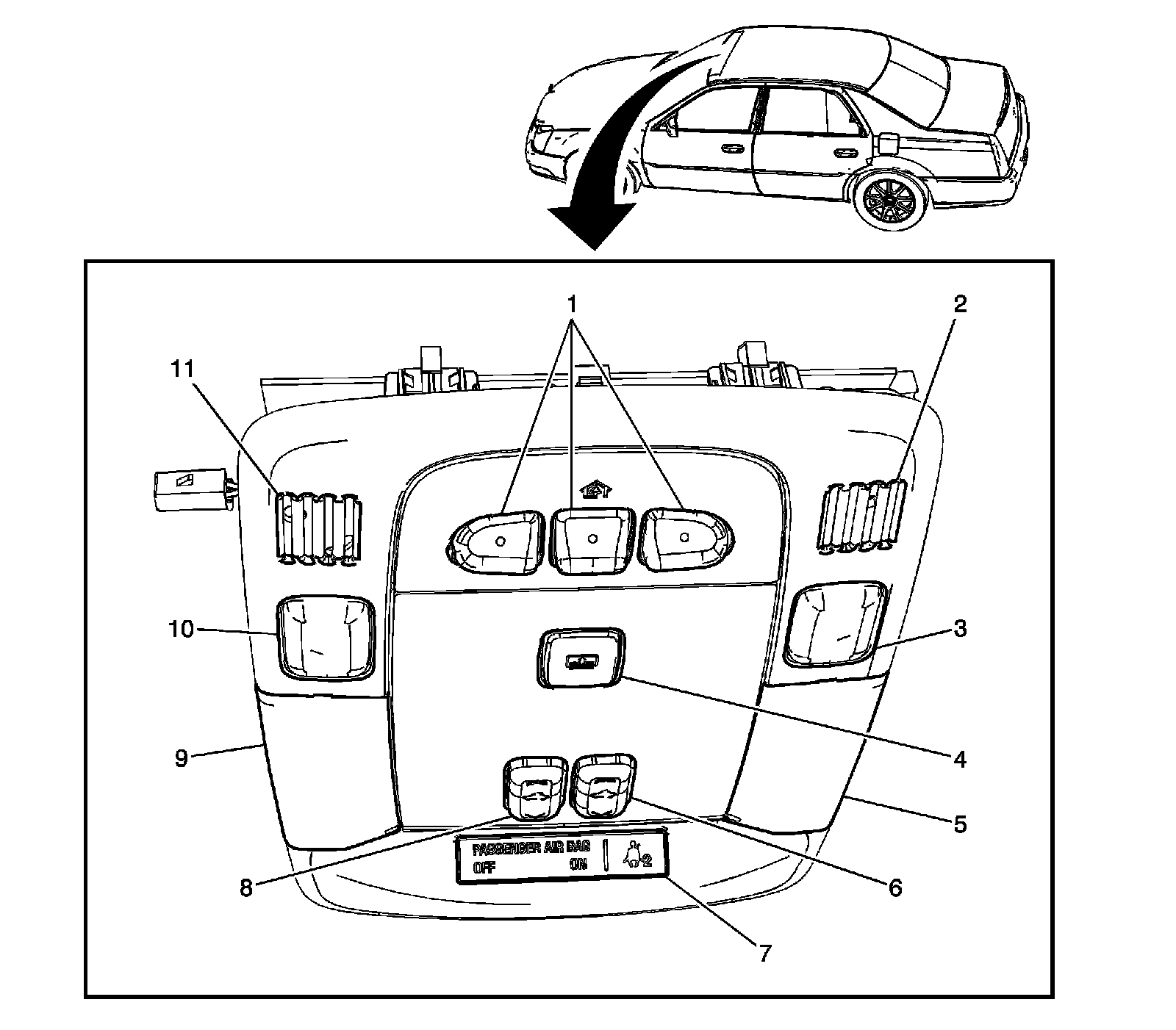 7 - Inflatable Restraint PASSENGER OFF/ON Indicator