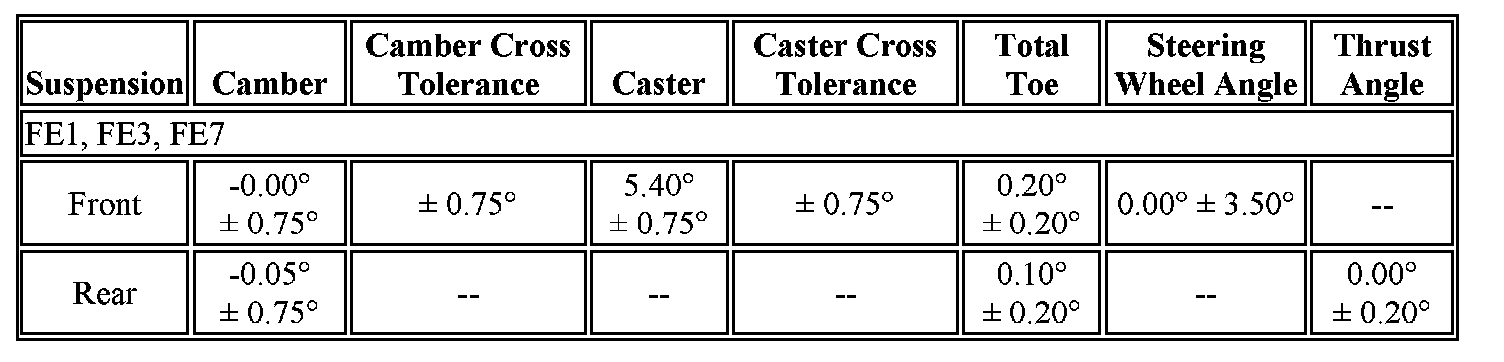 Wheel Alignment Specifications